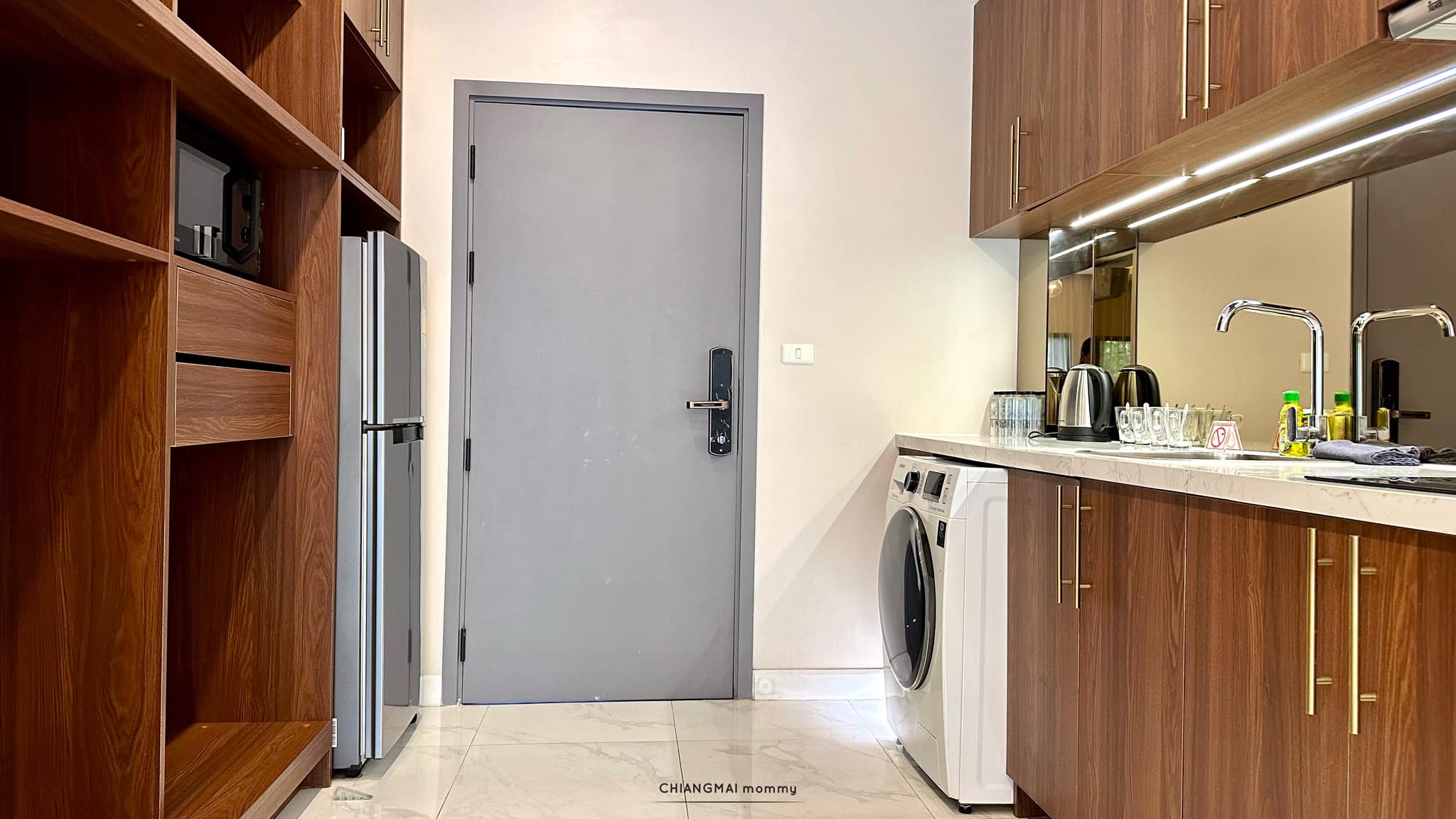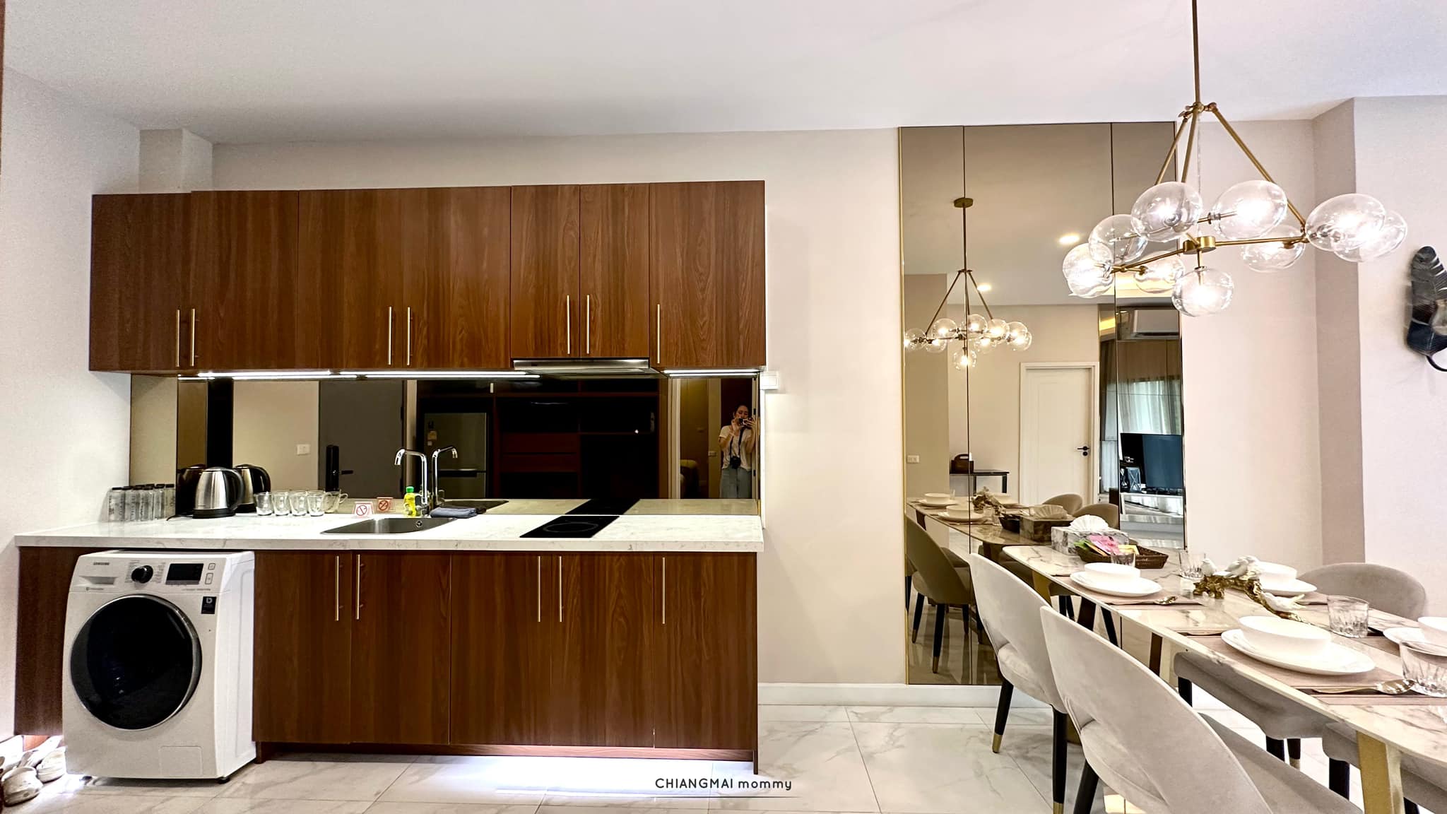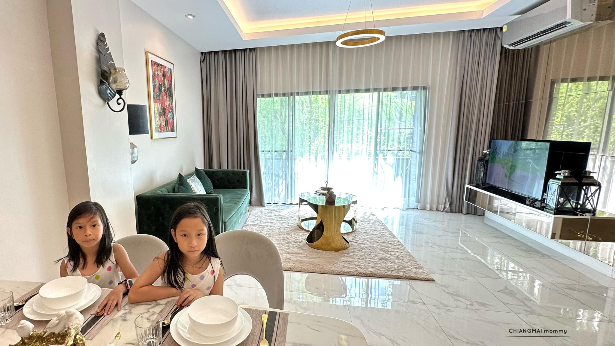 จริงๆที่นี่เป็น Luxury Service Apartment ที่มีบริการทั้งรายวันและรายเดือน ดังนั้นใครมาเชียงใหม่กำลังมองหาที่พักแบบครอบครัว ต้องการความเป็นส่วนตัว สะดวกปลอดภัย ที่นี่เหมาะมากเลยค่ะยิ่งอยู่ยาวๆยิ่งเหมาะค่ะ เพราะมีห้องครัว สามารถทำอาหารให้ลูกทานเองได้ มีอุปกรณ์อำนวยความสะดวกต่างๆ ครบมากไม่ว่าจะเป็นเครื่องซักผ้า ไมโครเวฟ อุปกรณ์ทำครัว เตาไฟฟ้า เครื่องดูดควัน ตู้เย็น โทรทัศน์ที่สามารถดูได้ทั้ง Netflix Youtube และยังมี Facility อื่นๆเช่น Fitness, สระว่ายน้ำ, อินเตอร์เน็ทความเร็วสูง, ระบบความปลอดภัยตลอด 24 ชม. เป็นต้น