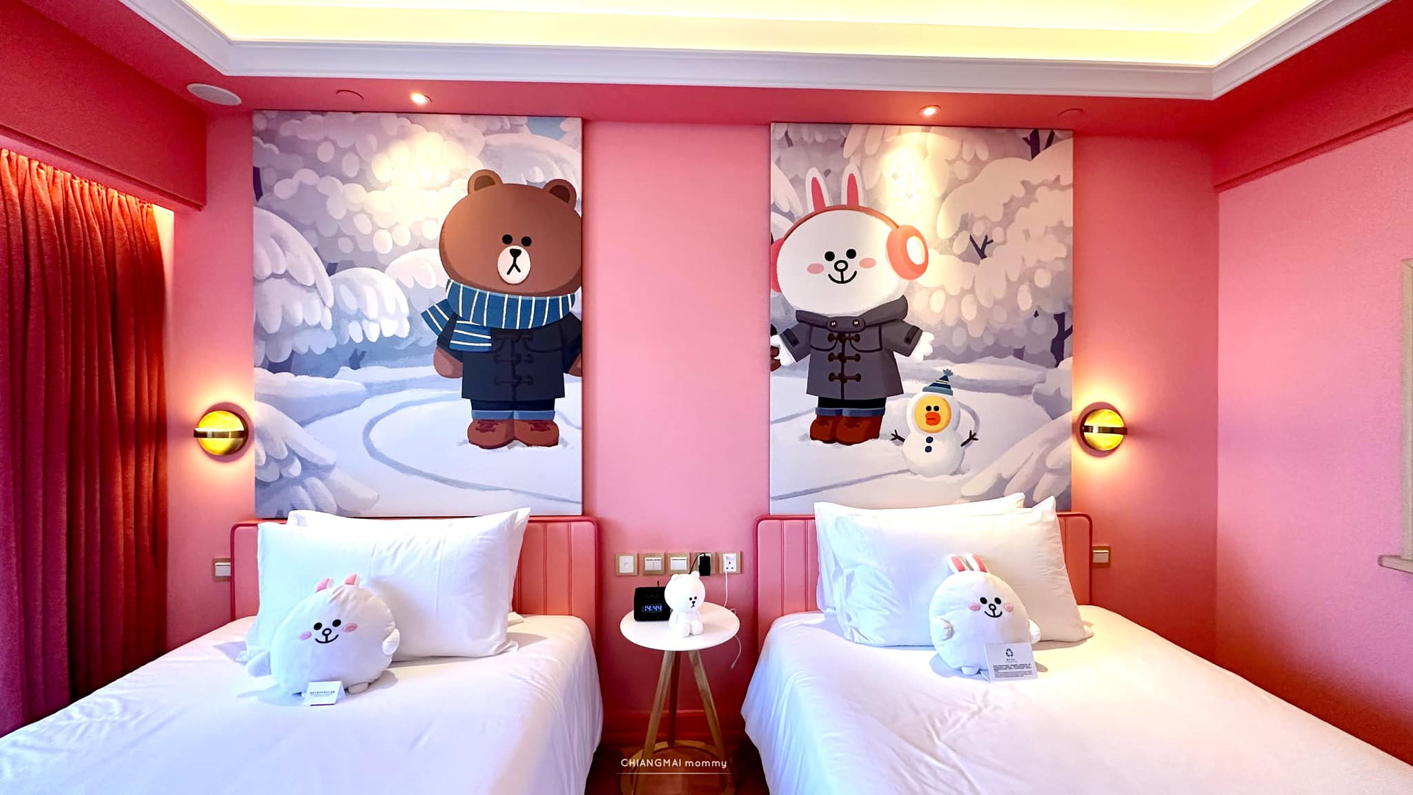 ที่นี่คือโรงแรท Lisbuata Hotel จะอยู่ฝั่ง Taipa นะคะ เป็นโรงแรมเปิดใหม่ ธีม Line friend ซึ่งจะมีให้เลือกแบบสีชมพูหวานๆหรือสีฟ้าเด็กผู้ชาย ทุกอย่างที่นี่คือตกแต้งด้วยพี่หมีบราว์นและโคนี่และผองเพื่อน น่ารักสุดๆ