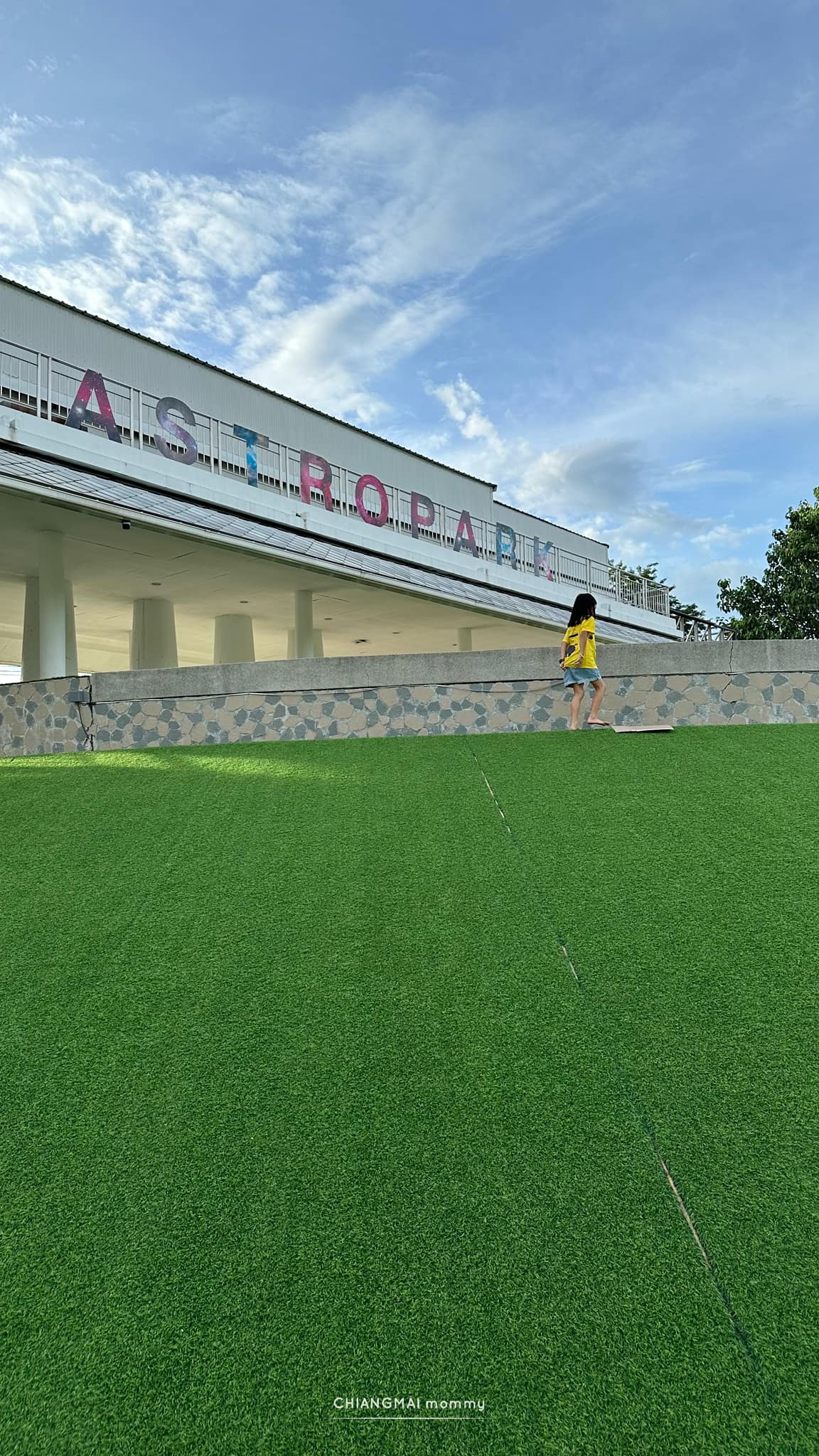 แต่ยังไม่จบนะคะ! ยังมีสนามเด็กเล่นและเนินสไลเดอร์มาให้เด็กๆได้เล่นต่อค่ะ แน่นอนว่าเราพกกล่องกระดาษมาเล่นด้วย วิวช่วงนี้คือดีต่อใจ อากาศสดชื่นมาก อานิสงส์ฝนน่าจะตกที่อื่นค่ะ