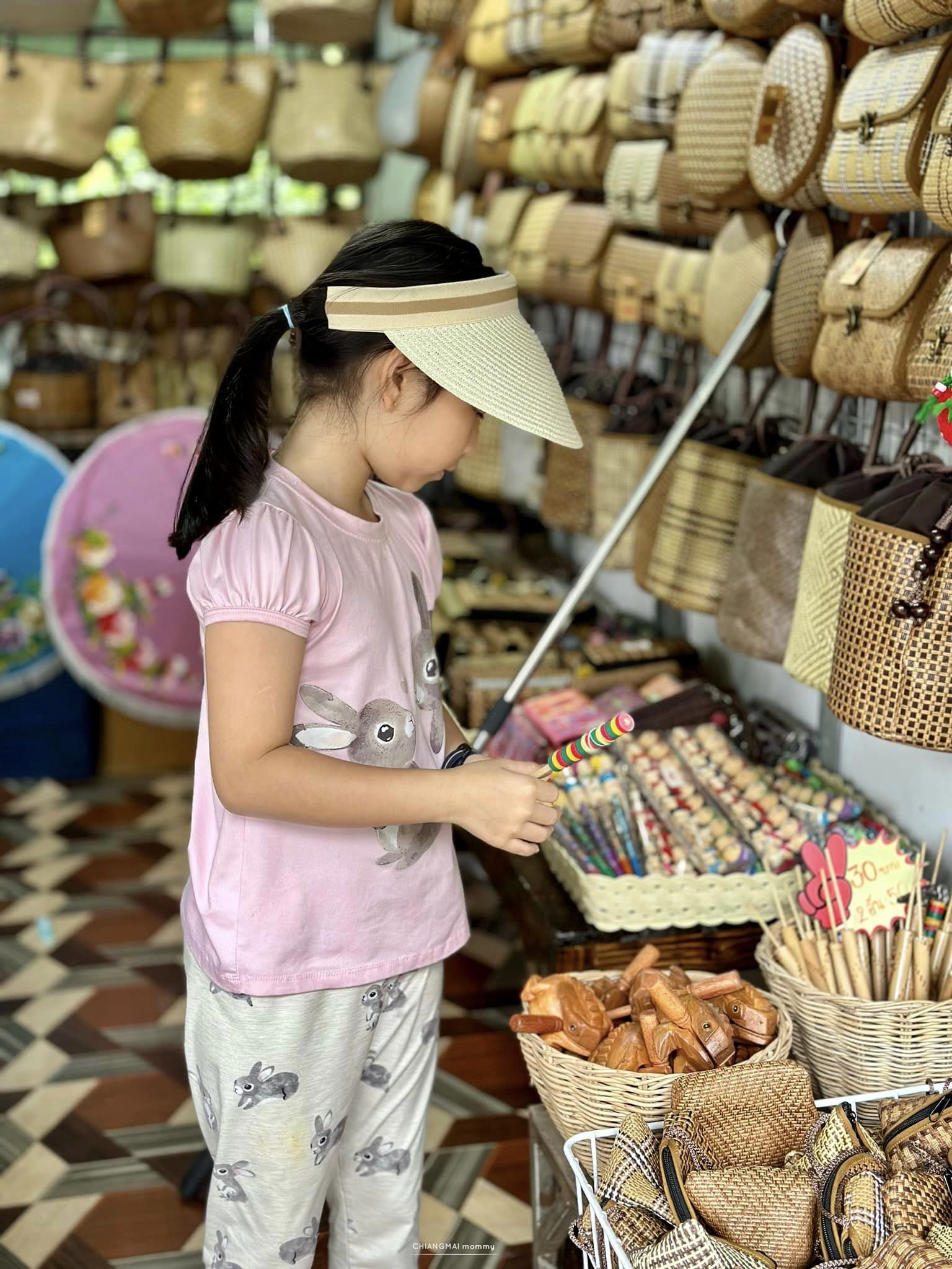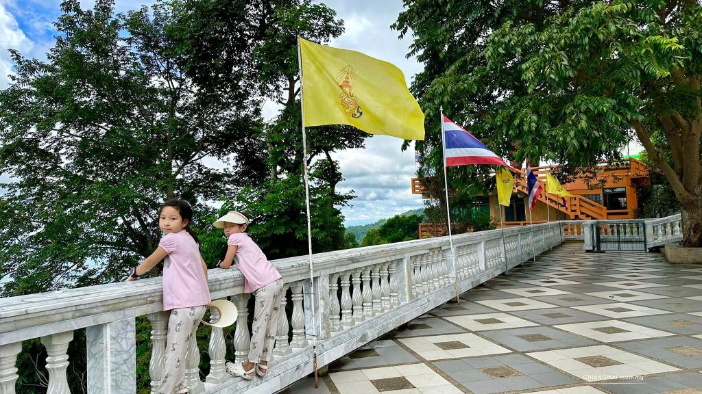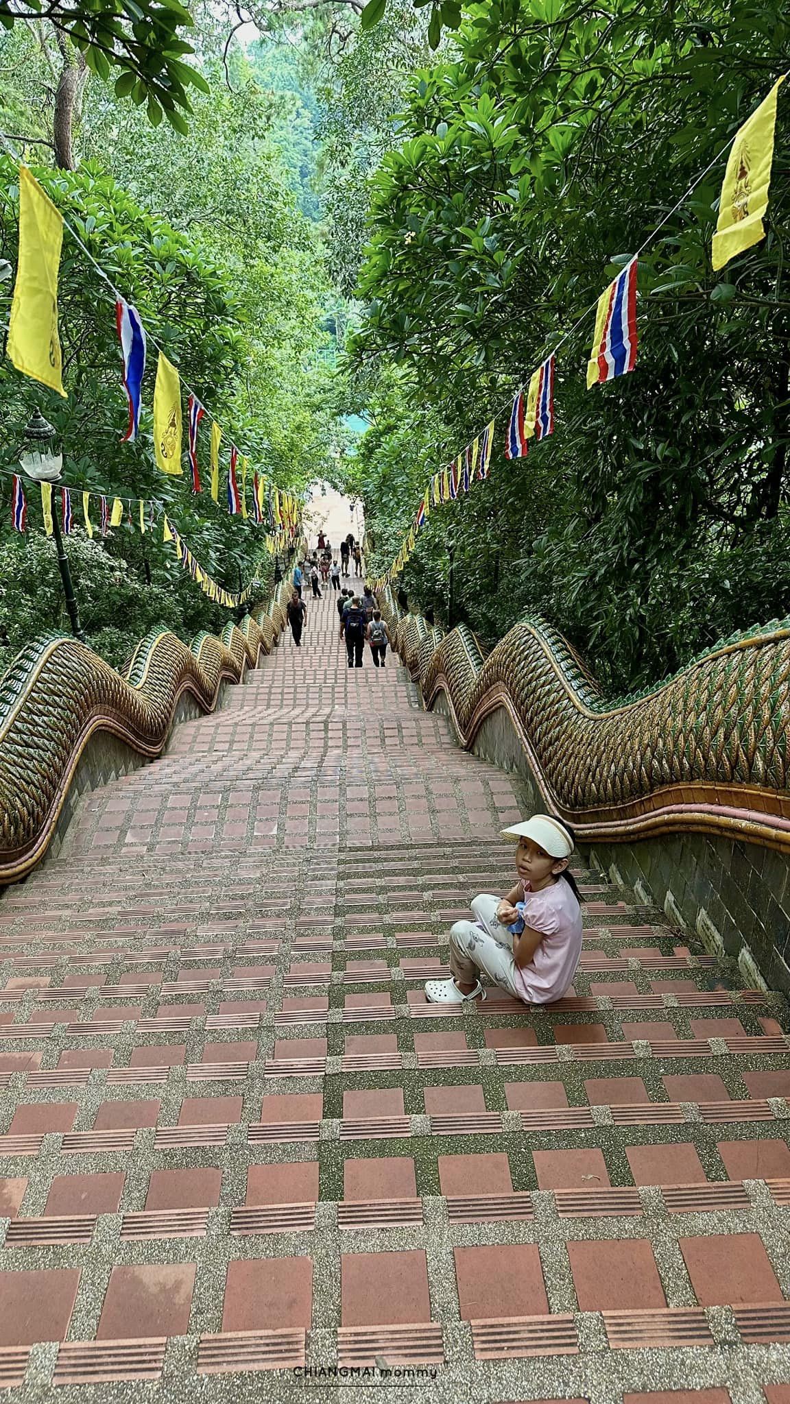 พอมาถึงทางขึ้นวัดจะมี 2 วิธีคือขึ้นบันไดกับลิฟต์ค่ะ เราเลือกขึ้นบันได ตรงทางขึ้นก็จะมีสินค้าพื้นเมืองจำหน่าย เดินช้อปปิ้งก็สนุกดีนะคะ ทางขึ้นจะมีประมาณ 300 กว่าขั้น ทางมีชานพักเป็นระยะเลยทำให้ไม่ชันมาก เดินขึ้นเรียกเหงื่อได้อยู่ค่ะ ท้าทายเด็กๆดีนะคะ จริงๆเดินไม่ยาก แม่ออกกำลังกายอยู่ก็เดินสบายๆไม่ปวดขาค่ะ พอเด็กๆขึ้นมาถึงพระธาตุก็ชมให้กำลังใจที่เด็กๆทำสำเร็จ แต่ขากลับเราลงลิฟต์ค่ะ มีค่าบริการ 10.- ด้านบนมีห้องน้ำบริการนะคะ