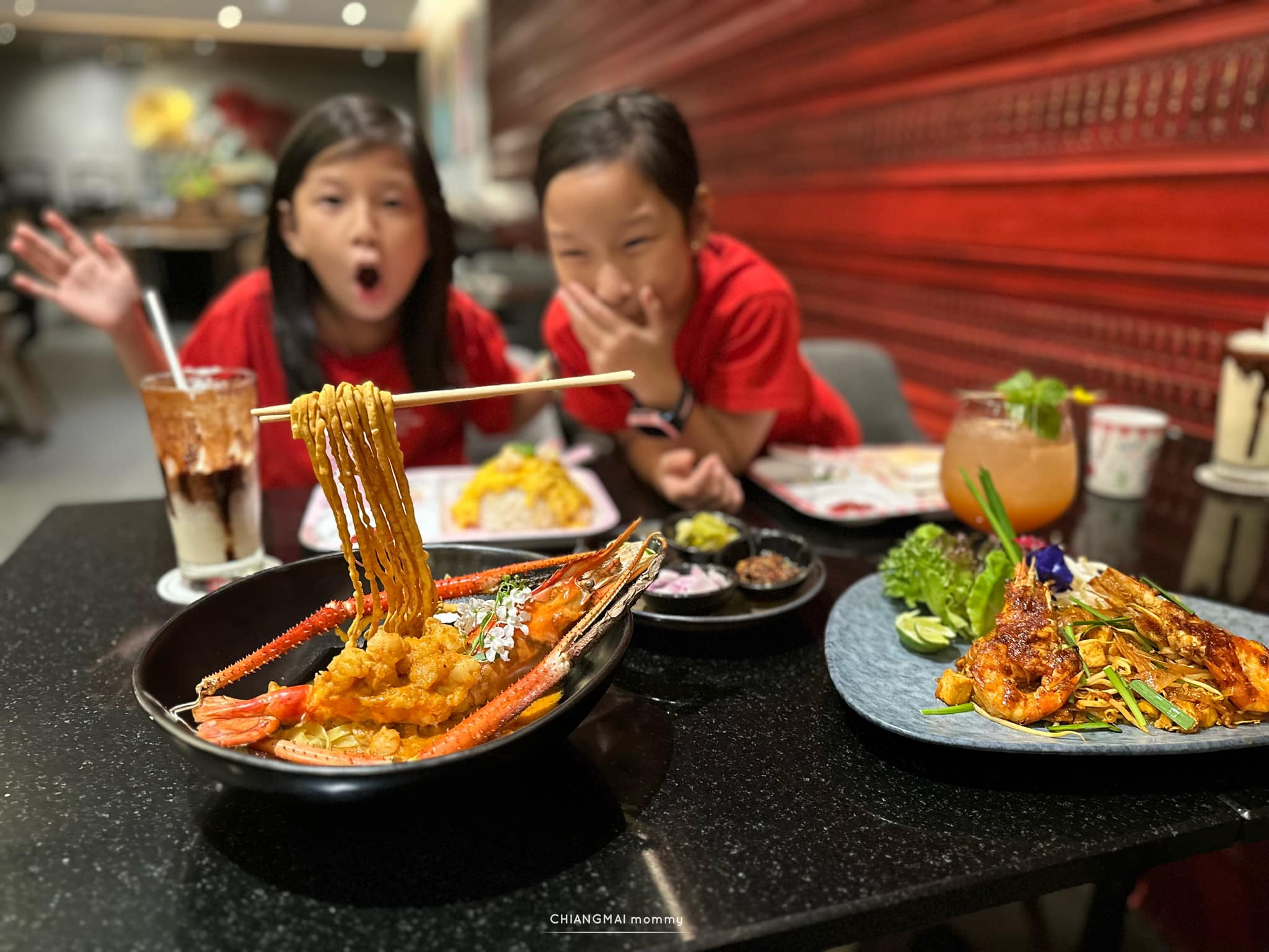 เมนูพิเศษช่วงนี้คือข้าวซอยกุ้งแม่น้ำยักษ์ ที่เด็กๆเห็นปุ๊บร้องว้าวววววดังๆทั้งคู่เลยค่ะ Amazing มั๊กๆ ตะเกียบลอยได้ไง