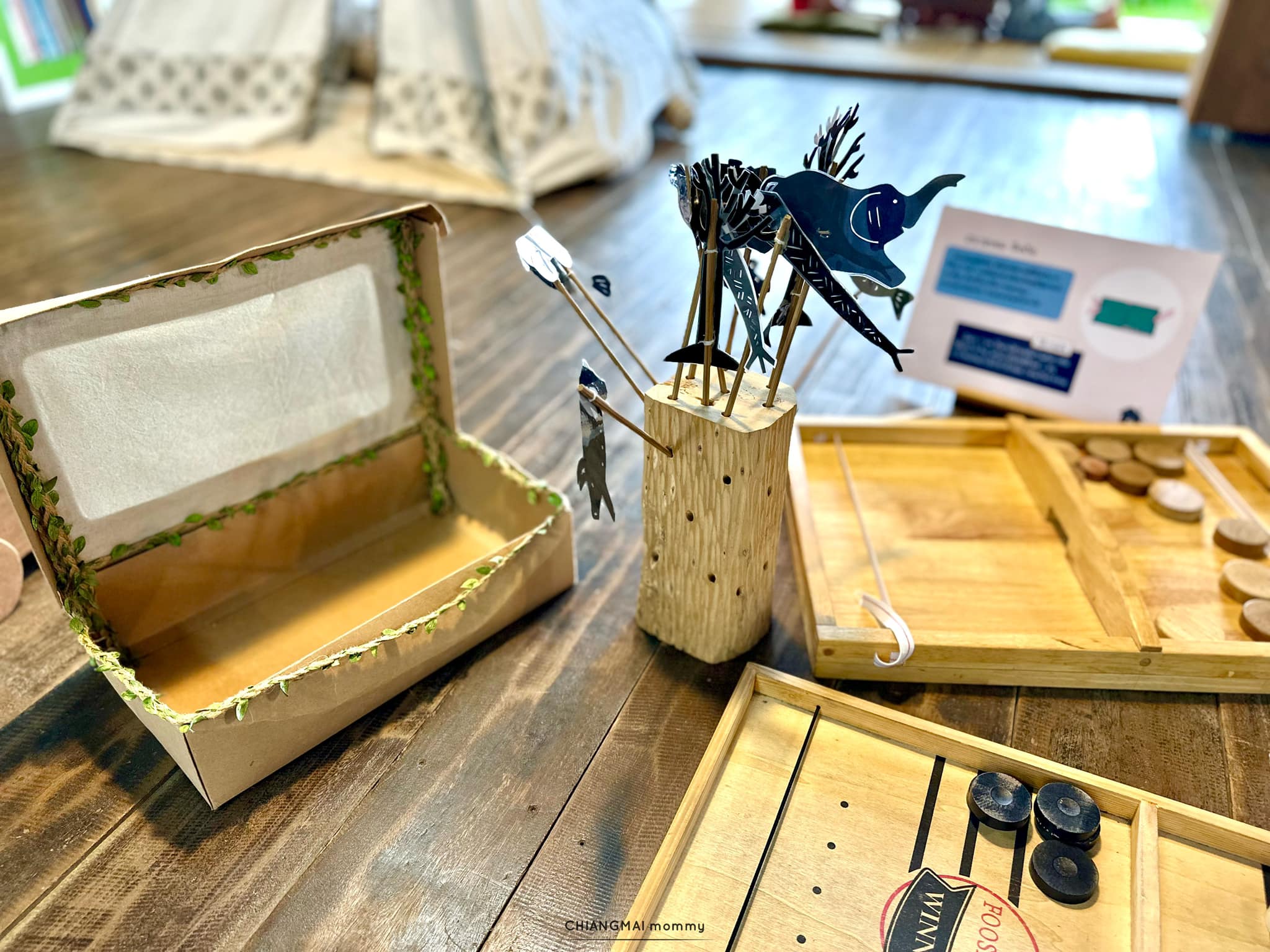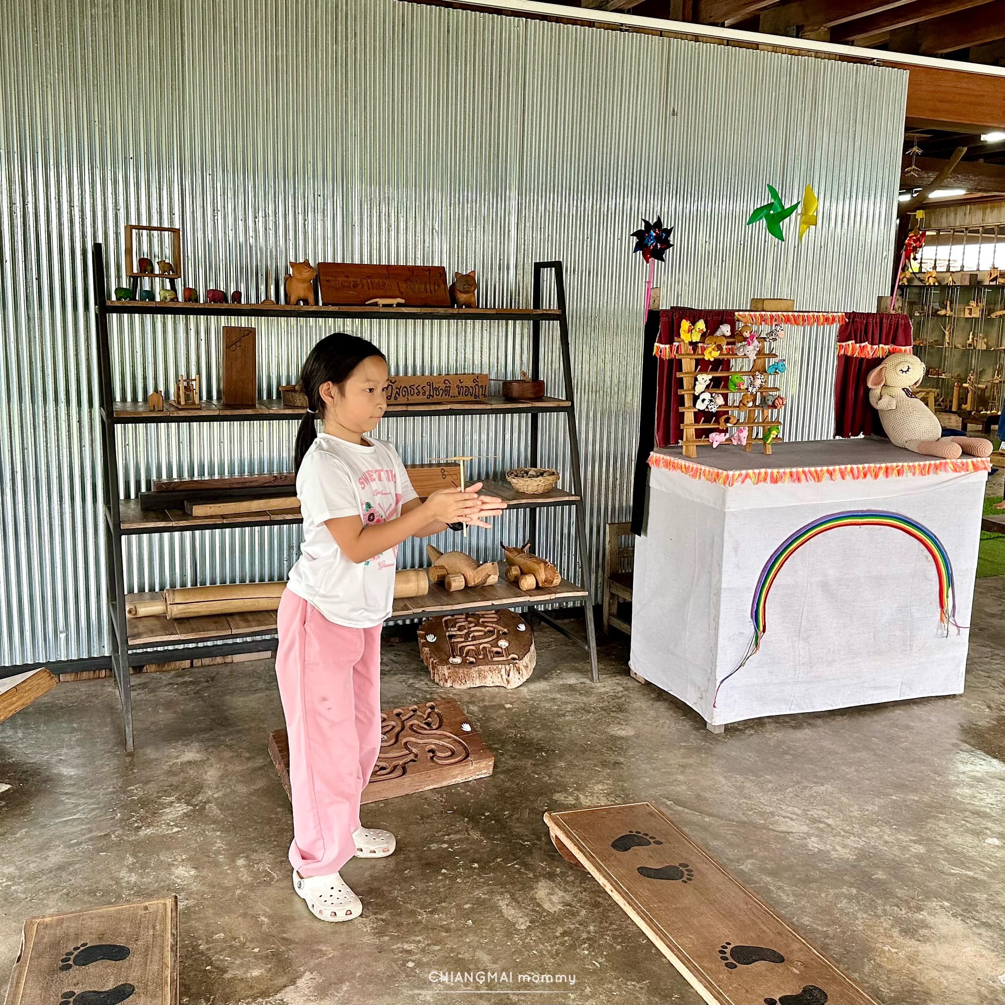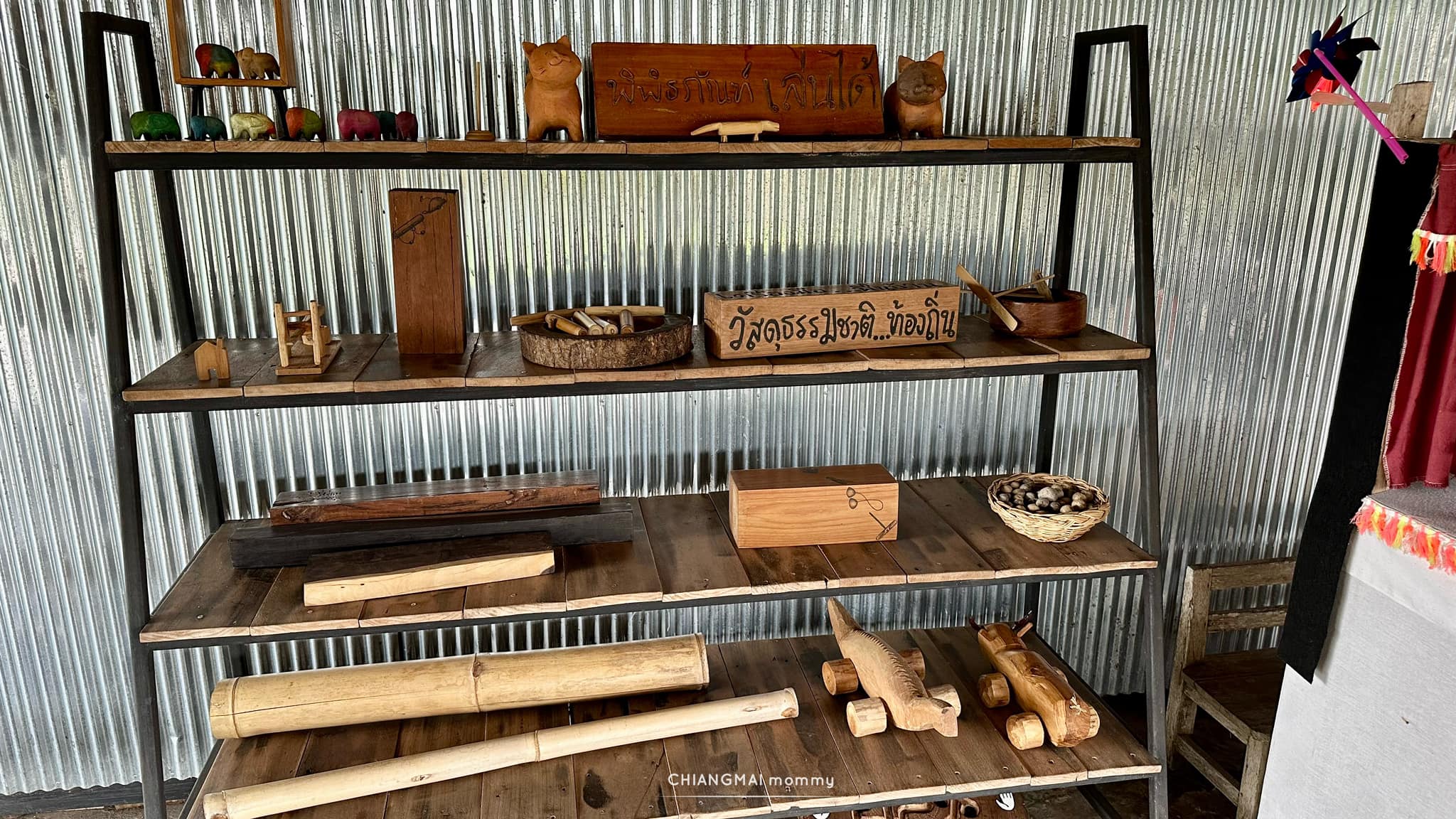 ของเล่นไม้แบบละลานตาต้องที่นี่เลยค่ะ โรงเล่นเรียนรู้ ที่ ต.ป่าแดด อ.แม่สรวย จ.เชียงราย ส่วนใหญ่จะเป็นของเล่นไม้ที่เป็นภูมิปัญญาชาวบ้านในภาคเหนือ ของเล่นหายาก ของเล่นโบราณสมัยคุณทวดรวมถึงของใช้โบราณที่แม่เกิดไม่ทันอีกด้วย บางชิ้นนี่บอกตรงๆว่าเพิ่งเคยเห็นค่ะ แล้วพอได้ลองเล่นมันสนุกมากกกก ตื่นตาตื่นใจ!!