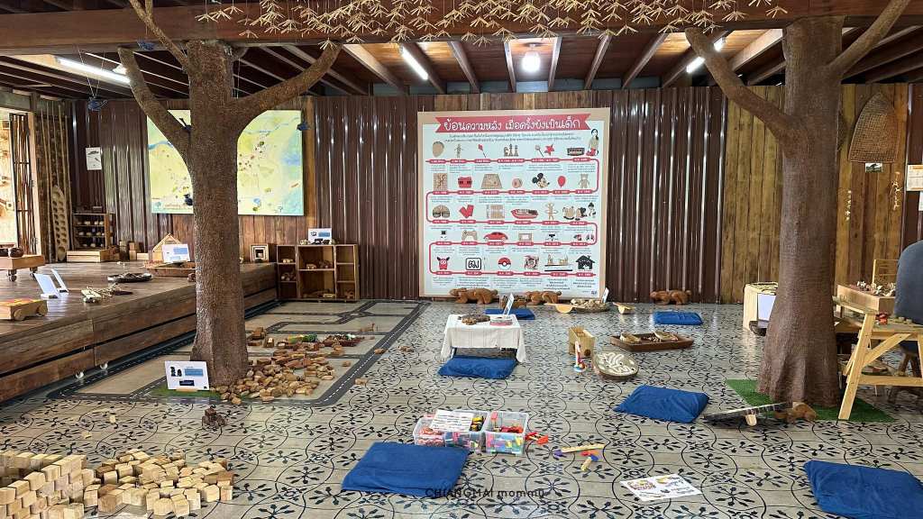 เด็กๆจะทั้งสนุกทั้งได้เรียนรู้อัตลักษณะการเล่นแบบไทยๆ ผ่านของเล่นไม้ที่จัดวางไว้ให้เด็กๆได้หยิบจับและทดลองเล่นแบบไม่หวงของเลยค่ะ พี่ๆสต๊าฟเชิญชวนให้เด็กๆได้เล่นสนุก