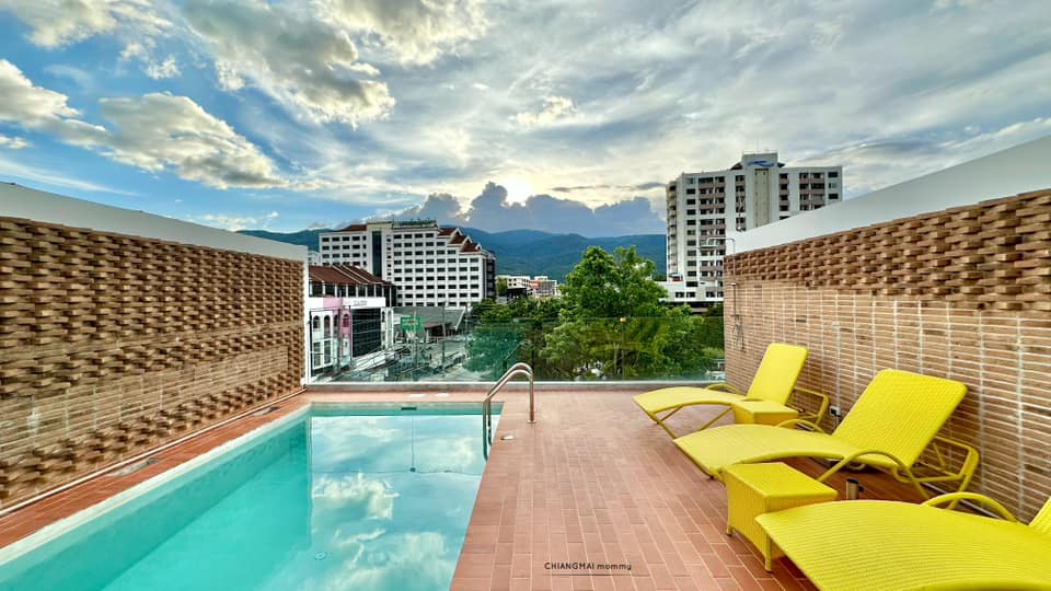 ส่วนพวก Facility ของโรงแรม ก็จะมีสระว่ายน้ำบนชั้นดาดฟ้าที่เบื้องหลังเป็นวิวดอยสุเทพสวยๆ ห้องฟิตเนสสำหรับคนที่ชอบออกกำลังกาย