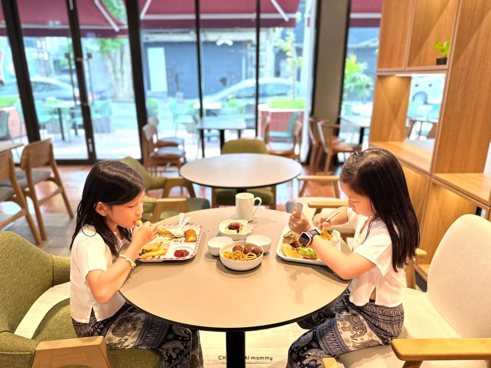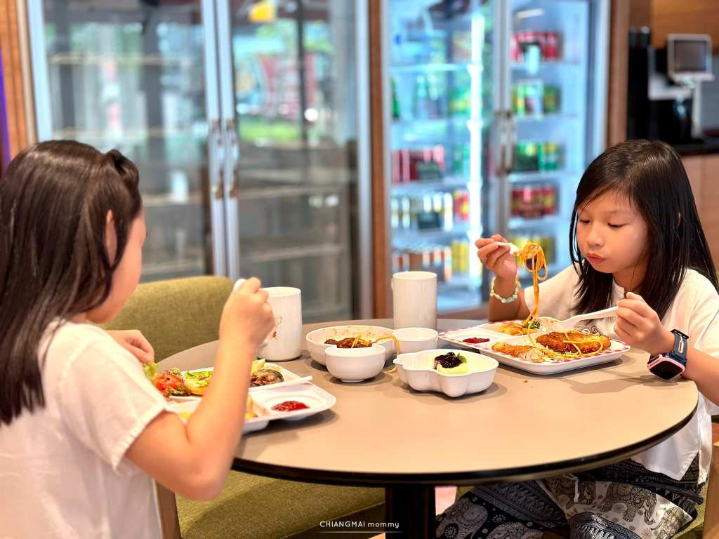รวมถึงบริการเครื่องดื่ม ชา กาแฟ นม ที่เปิดบริการตลอด 24 ชั่วโมง เด็กๆหิวเมื่อไรก็สามารถเดินไปกดเครื่องดื่มได้เรื่อยๆค่ะ ข้างล็อบบี้จะมีห้องอาหาร Charlie’s corner restaurant ไว้บริการเด็กๆด้วยนะคะ เมนูเด็กงี้เพียบเลยค่ะ ส่วนอาหารเช้าก็จะเป็นบุฟเฟต์ มีครบทั้งคาว-หวาน ขนมปัง ข้าวต้ม สลัดบาร์ ผลไม้ คือสารอาหารครบ 5 หมู่แน่นอน อิ่มจุกๆไปเลย
