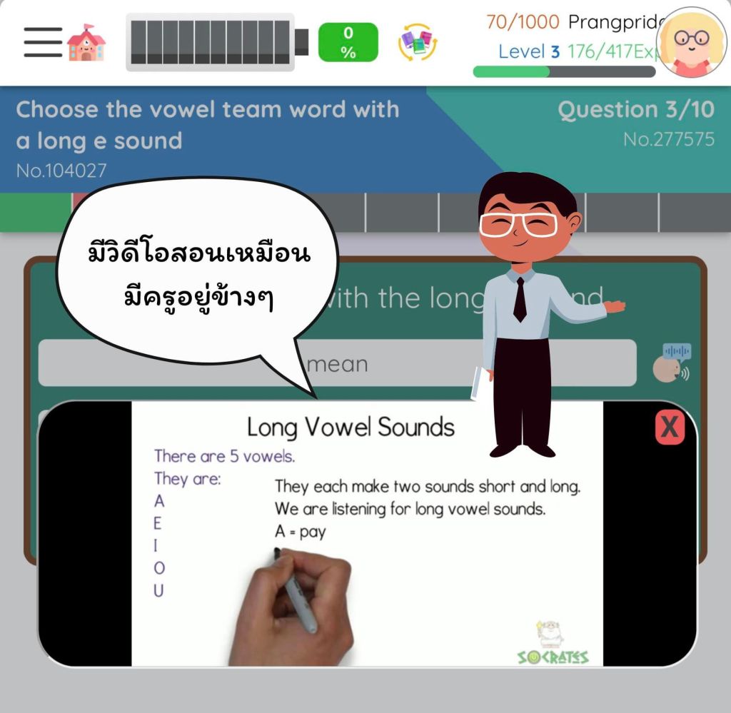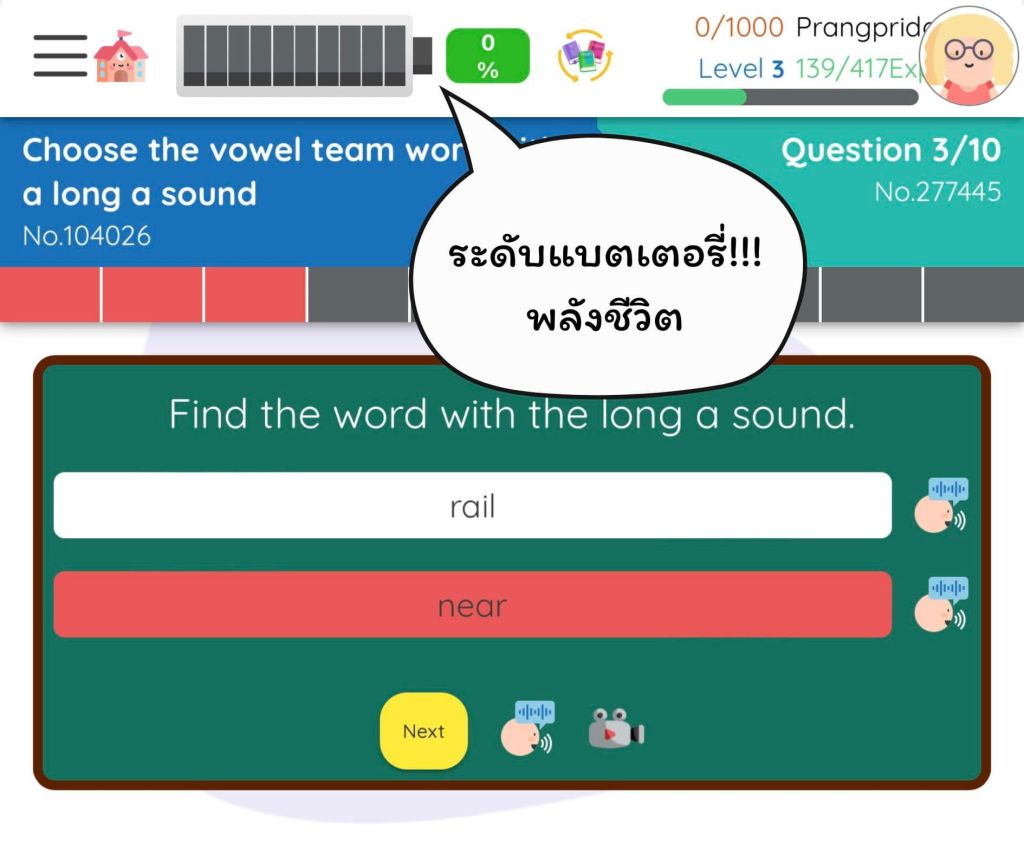 คุณพ่อคุณแม่ไม่ต้องกังวลใจในเรื่องเด็กๆจะเล่นเกมเพลิน เพราะแพลตฟอร์มจะมีแบตเตอรี่วัดพลัง ถ้าแบตหมดเมื่อไร เด็กๆจะต้องกลับมาทำโจทย์แบบฝึกหัดเพื่อชาร์จพลังค่ะ เหมือนบังคับเรียนกลายๆ แล้วต้องตอบถูกด้วยนะคะ ถ้าตอบผิดติดกัน 3 ข้อแบตเตอรี่ก็จะลดลงค่ะ กันเด็กหัวหมอรีบกดมั่วๆเพื่อชาร์จแบตเตอรี่เล่นเกม