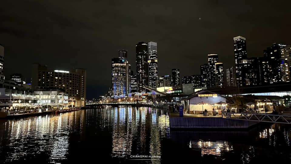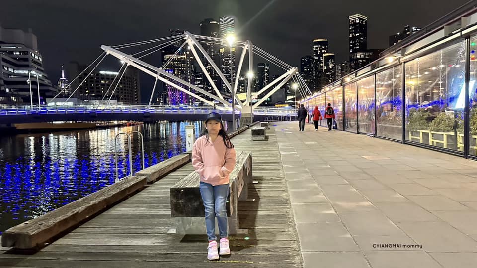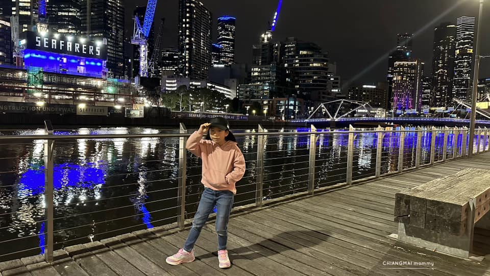 พอช้อปปิ้งเสร็จก็เดินเลียบแม่น้ำ Yarra ชมบรรยากาศตัวเมืองกลางคืน สวยมากกกกกก เมลเบิร์นที่นี่เป็นเมืองที่ค่อนข้างปลอดภัยแต่ก็แอบระวังตัวนิดหน่อยเพราะจะมีฝรั่งแบบเมาๆตะโกนโหวกเหวกน่ากลัว พวกเร่ร่อนก็มี ละเรามากัน 3 คนแม่ลูกเผื่อไว้ก่อนค่ะ เจอแบบคนฝรั่งเร่ร่อนมาขอทาน กับมาไถ่บุหรี่ของคนเอเชียพอเค้าไม่ให้ก็ตะโกนด่าเสียงดังเลย เด็กๆก็ตกใจนิดนึงเลยรีบเดินหนีกลับโรงแรมไม่เดินเถลไถลละ