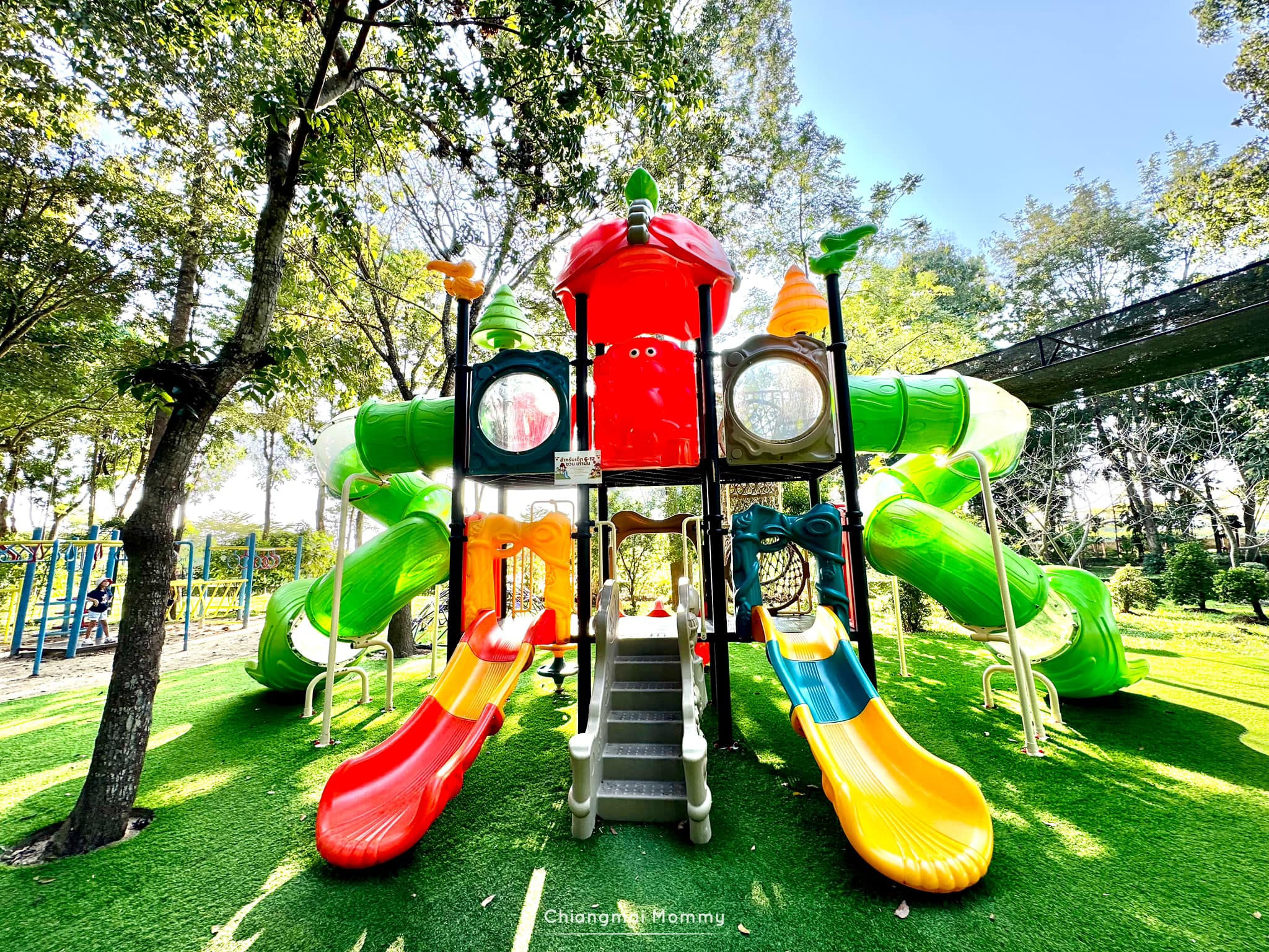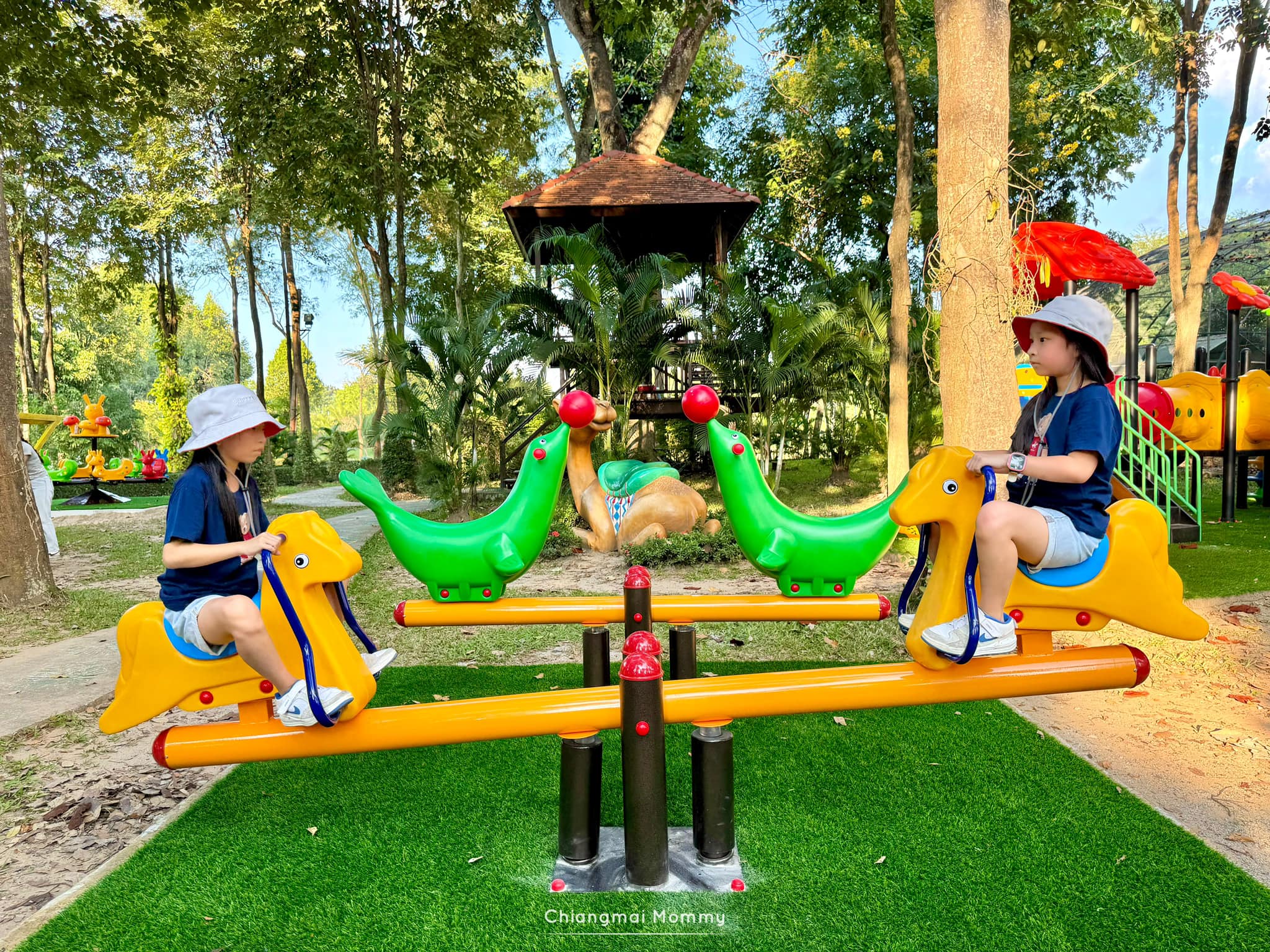 สนามเด็กเล่นที่แบ่งเป็น 2 จุดแยกสำหรับเด็กเล็ก (3-5 ขวบ) และเด็กโต (6-12 ขวบ) เครื่องเล่นที่ออกแบบมาให้ปลอดภัยเหมาะกับวัยโดยเฉพาะ รวมถึงบ่อทราย บ้านต้นไม้ ที่ปีนป่าย ชิงช้า แทรมโพลีน มังกี้บาร์ ชิงช้า เรือไวกิ้ง คือดีงามมากเด็กๆแทบไม่อยากไปไหนเลยค่ะ อยู่ที่นี่นานมากๆ