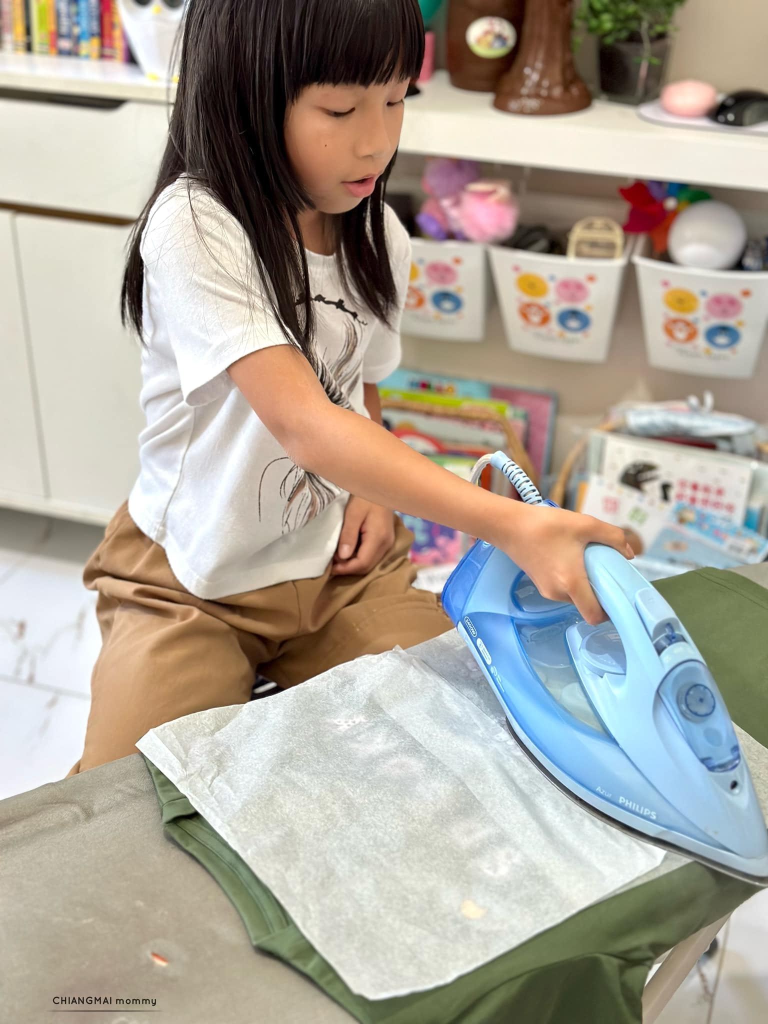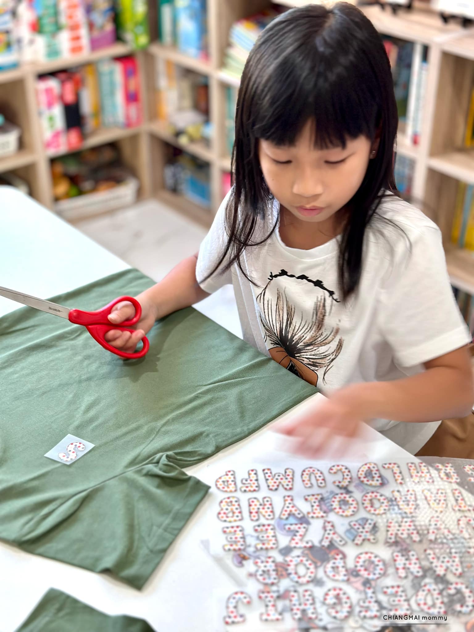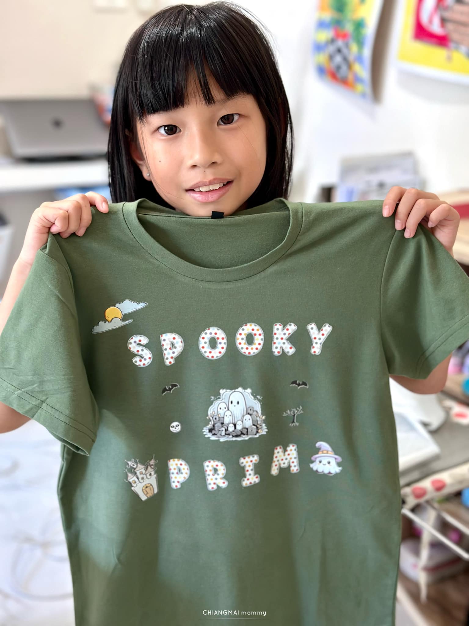 ใน Box set ที่เลือกจะเป็นธีม Halloween จะมีลายการ์ตูนน่ารักๆ มีตัวหนังสือให้ มีคู่มือวิธีการทำและชุดตัวอย่างให้ทดลองทำก่อนวางจริงด้วยค่ะ พอคิดว่าทำเป็นแล้วก็ถึงเวลาลุย!! แม่ก็เอาที่ลูกชอบเลยแต่งตามจินตนาการ ทำออกมาแล้วลูกภูมิใจในเสื้อตัวเองมากสวย Unique มีแค่หนึ่งเดียวในโลก ใส่สบายและสวยดูดีเลย
