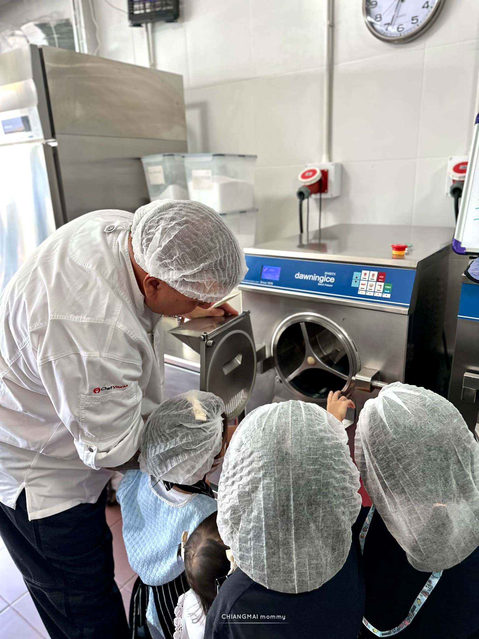 วิธีทำวัตถุดิบต่างๆ กระบวนการขั้นตอน เชฟบอกหมดไม่มีกั๊ก เด็กๆตื่นเต้นเป็นทุนเดิมอยู่แล้วเพราะนี้เป็นครั้งแรกที่จะได้มาดูการทำไอศกรีมของโปรด ทำเสร็จก็ตักชิมฟินมาก~บอกเยยยย นี่มันสวรรค์ของเด็กๆชัดๆ ตั้งใจและตั้งตาชิมกันสุดๆเลยค่ะ