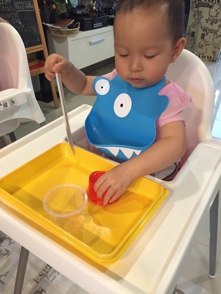 1 ขวบ 6 เดือน หัดใช้มีดพลาสติกหัดตัดเยลลี่ค่ะ