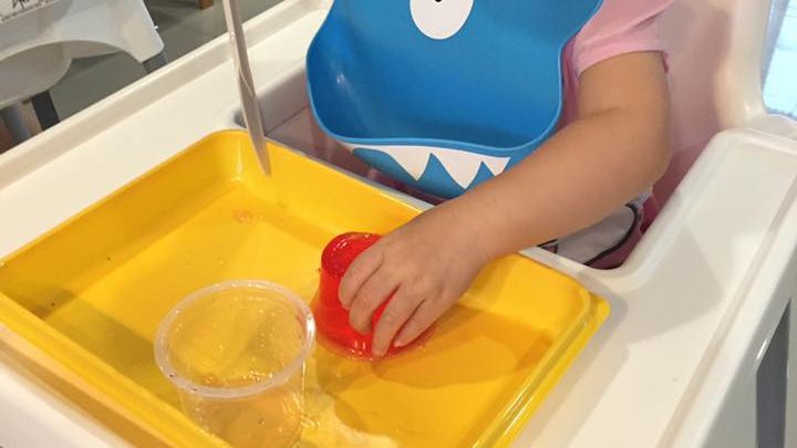 ซื้อเยลลี่สำเร็จแบบกินได้ เผื่อบางคนยังชอบเอาของเข้าปากอยู่ค่ะ ผิวสัมผัสก็จะหยุ่นๆเย็นๆแปลกใหม่ แม่ทำให้ดูเป็นตัวอย่างก่อนแล้วจึงปล่อยให้ลูกเล่นค่ะ