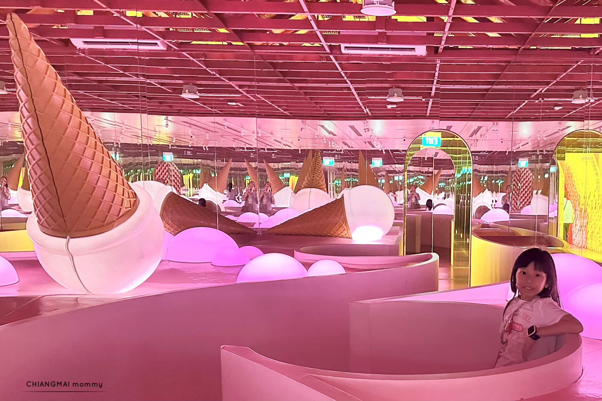 ที่นี่ชื่อ พิพิธภัณฑ์ไอศกรีม แต่แม่ว่าน่าจะชื่อสวนสนุกไอศกรีมมากกว่า เพราะเริ่มแรกก็ตั้งชื่อตัวเองเป็นชื่อไอศกรีมแล้วก็มีประวัติให้อ่านนิดหน่อย นอกนั้นจะเป็นเกม มีเครื่องเล่นต่างๆ สวนสนุก ถ่ายรูปเช็คอินประมาณนี้ ซึ่งสไตล์ที่นี่คือสีชมพูหวานมากๆ
