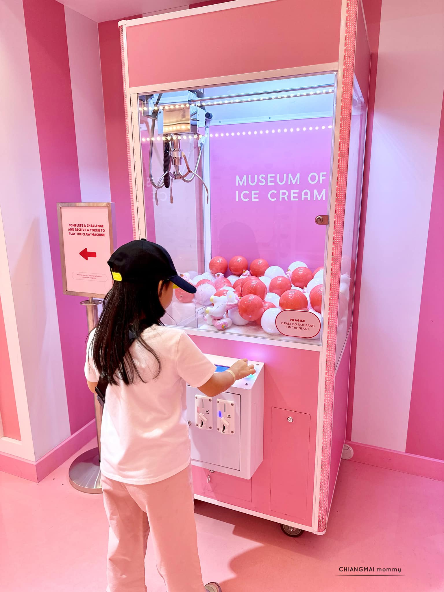 ซึ่งด้านในจะแบ่งเป็นห้องต่างๆ แต่ละห้องก็จะมีจุดทานไอศกรีมต่างๆกันทั้งแบบถ้วยสกู๊ป แบบโคน เวเฟอร์ ไอศกรีมแบบตัดโบราณ หลายรสชาติให้เลือก เรากินไอศกรีมแบบเยอะมาก มีเกมตู้คีบ Claw Machine ให้เล่น ไปขอโทเคนได้ที่ห้องถัดไปค่ะ แค่เต้นนิดหน่อยก็ได้ละ