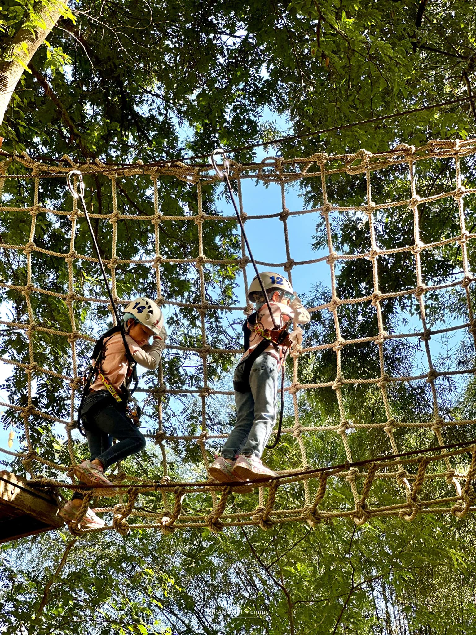 หรือจะเป็น High Rope Couse ที่มีฐานเยอะมว๊ากกก สูงสุดถึง 45 ฐาน อันนี้มีหลายด่านสนุกๆให้เลือกเล่น ลูกจะได้ฝึกทักษะของร่างกาย การแก้ปัญหาเฉพาะหน้า ท้าทายสุดๆ และที่ประทับใจคือความเขียวร่มรื่นของต้นไม้-ดอกไม้ บรรยากาศดีสุดๆเล่นท่ามกลางธรรมชาติสดชื่น ยิ่งช่วงหน้าหนาวนี้จะฟินมากค่ะ