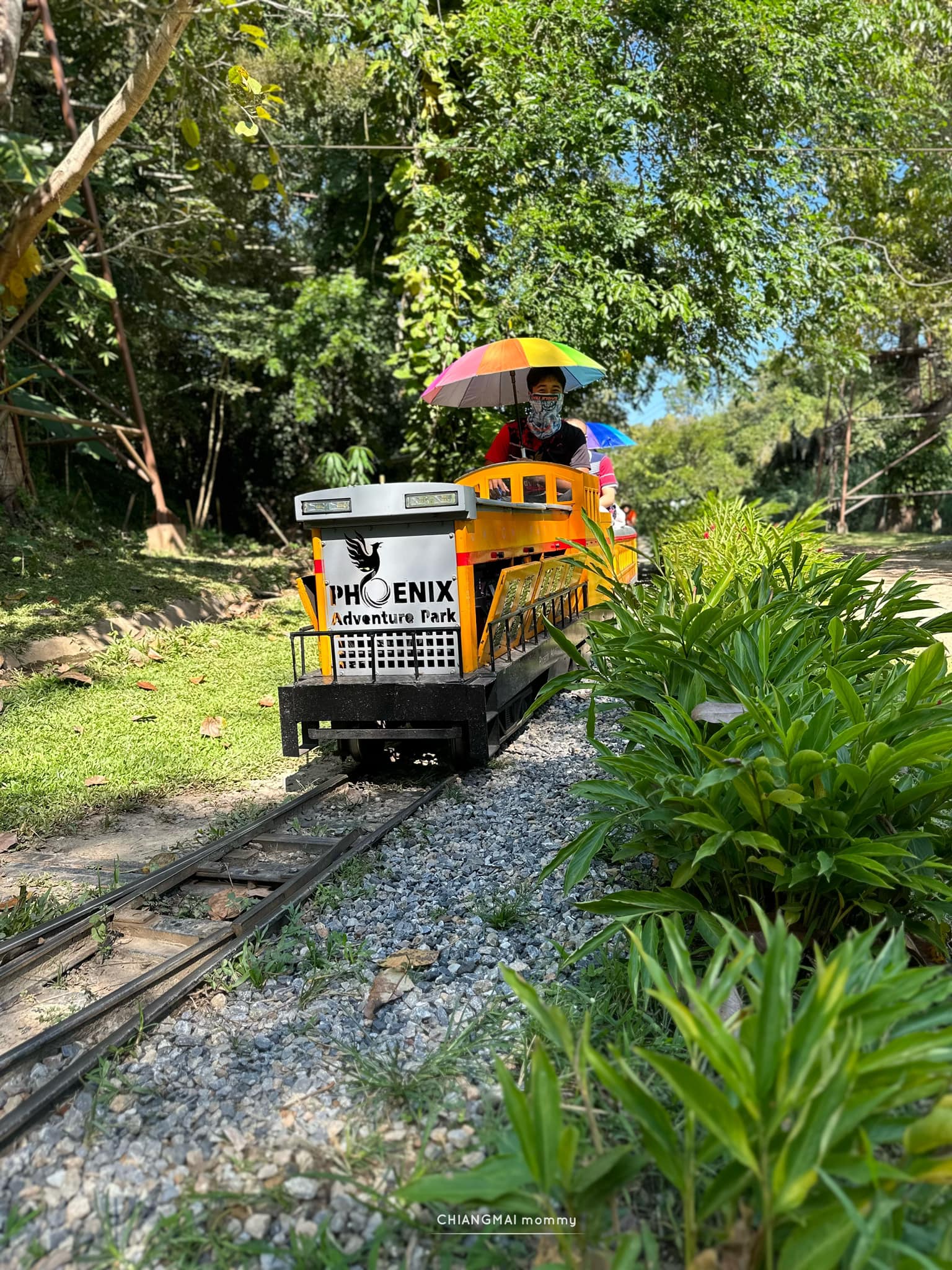 พอเล่น Ziplines เสร็จแม่ก็พาเด็กๆนั่งรถไฟเล็กเข้าไปทานอาหารที่คาเฟ่ด้านใน (จริงๆมีโปรแกรมเล่น Zipline เข้าสวนด้วยนะคะ) นั่งชมวิวสวยๆระหว่างเส้นทางข้ามสะพานแม่น้ำ ผ่านน้ำตก อุโมงค์ดอกไม้ ดูฝูงแกะแทะเล็มหญ้า นั่งผ่านทุ่งดอกไม้สีแดงสด สุดท้ายเข้าอุโมงค์รถไฟที่เพิ่งสร้างใหม่!! ระยะทางยาวมากกกก นั่งชมวิวเพลินเลยค่ะ