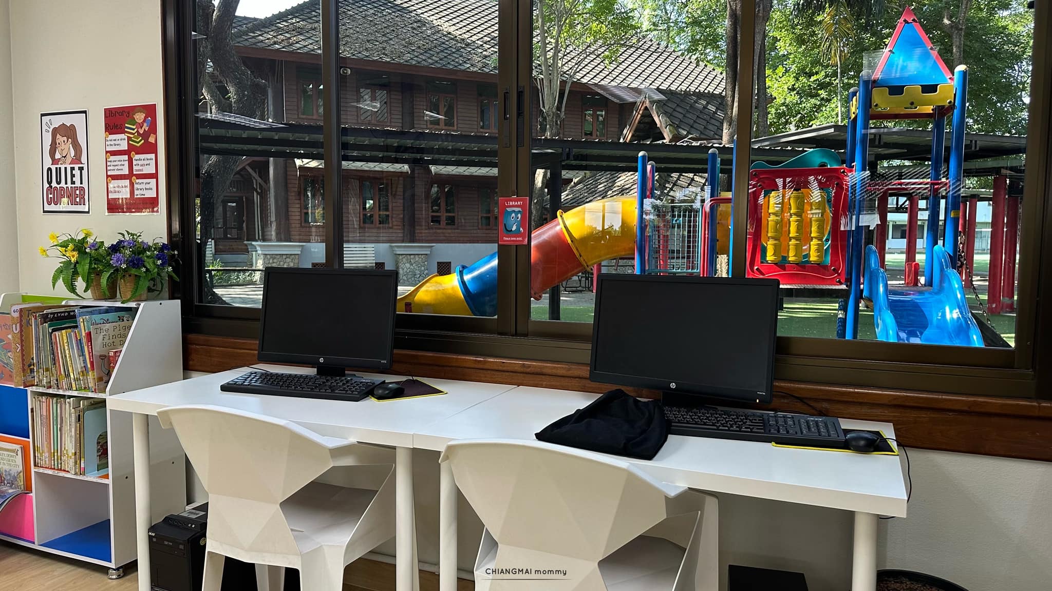 หรือส่วนของห้องสมุดที่จะมีหนังสือเวียนอัพเดตทุก 2 ปี หนังสือที่อายุเกินกว่านั้นจะถูกเก็บในห้อง Store หากหนังสือไหนที่ภายใน 5 ปีไม่มีการนำไปใช้ก็จะถูกนำออกไปค่ะ โดยห้องสมุดก็จะแบ่งตามระดับชั้นตามพัฒนาการและการใช้งานของนักเรียนค่ะ ห้องสมุดเด็กโตก็จะเน้นพวก Text book ของเด็กเล็กก็จะเน้นหนังสือนิทานฝึกอ่าน หนังสือกิจกรรมและการเรียน
