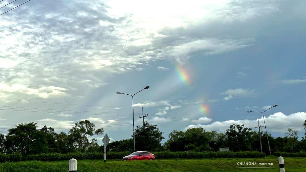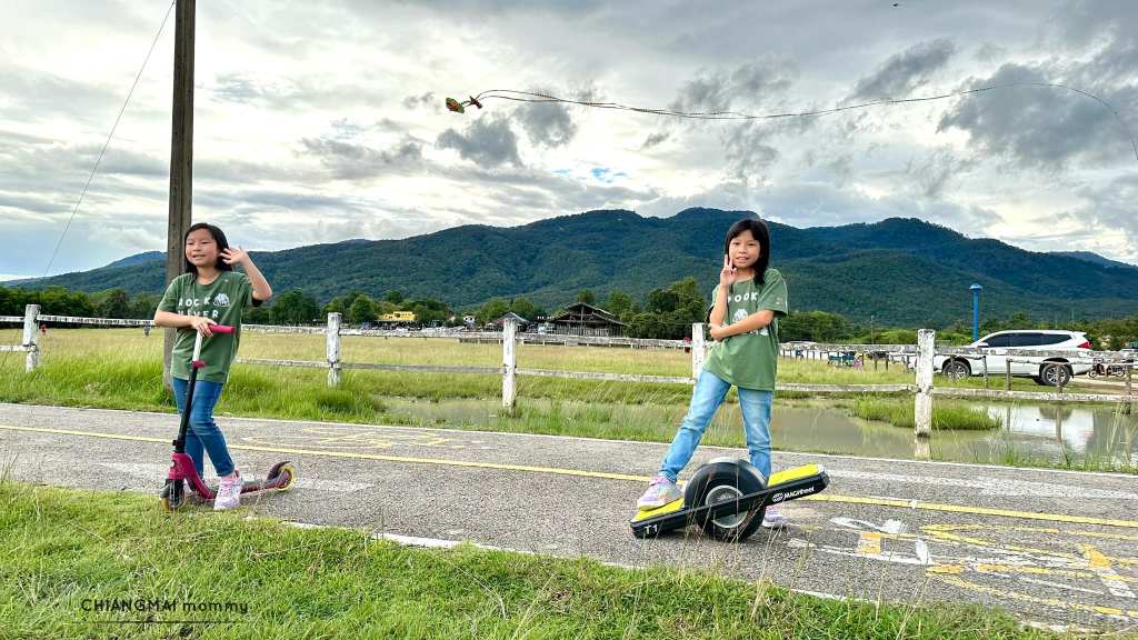 ส่วนเราวันนี้มาแบบสบายๆทำกิจกรรมอิสระ ลูกเอา Magwheel กับสกุตเตอร์มาเล่น ซึ่งอากาศวันนี้เย็นสบายแม้ว่าดินจะแฉะๆ หญ้าจะสูงหน่อย แต่คนก็ยังเยอะค่ะ มาเล่นว่าว ออกกำลังกาย ปั่นจักรยาน นั่งคุยนั่งกินกัน วิวดอยสุเทพด้านหลังนี่ช่างดีต่อใจ