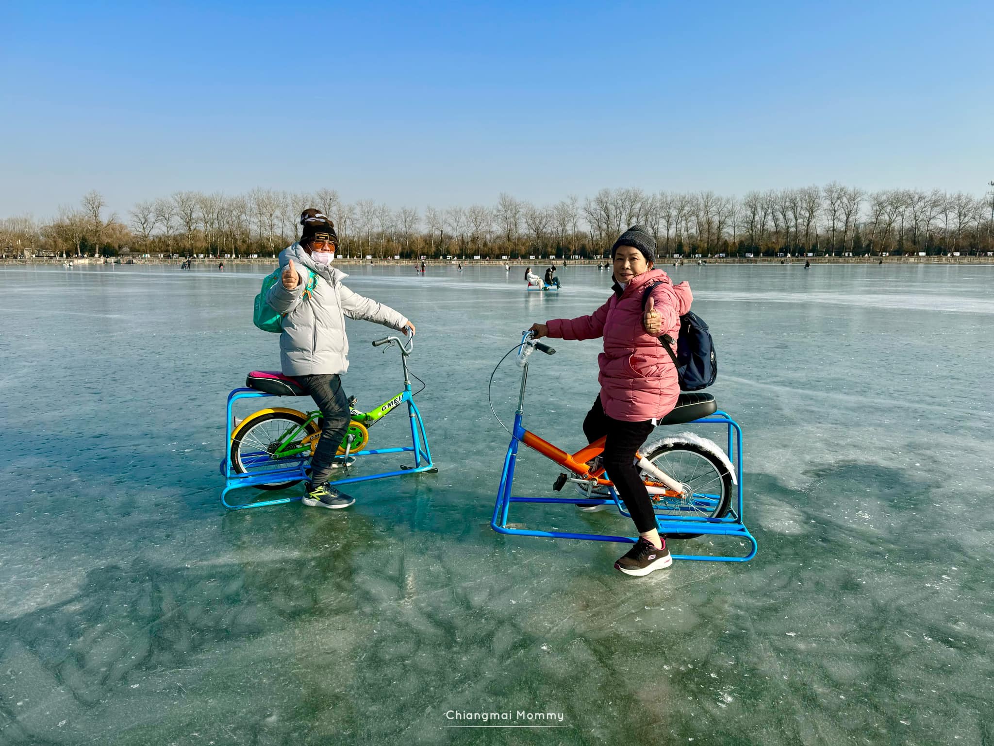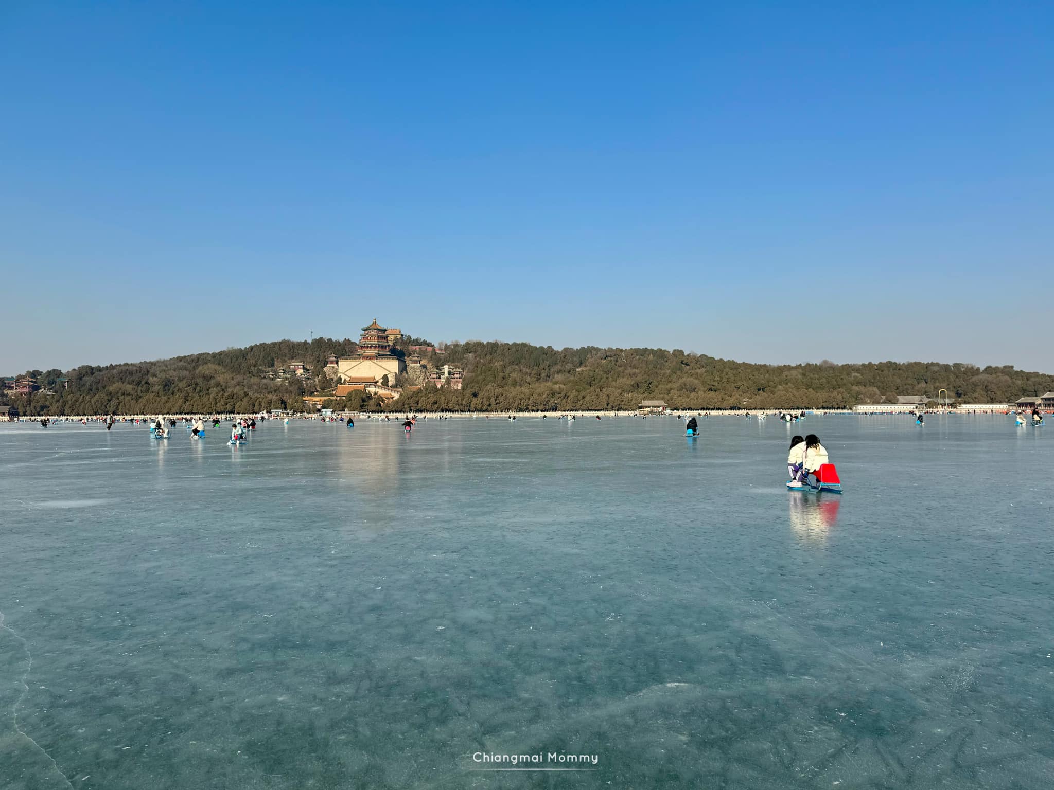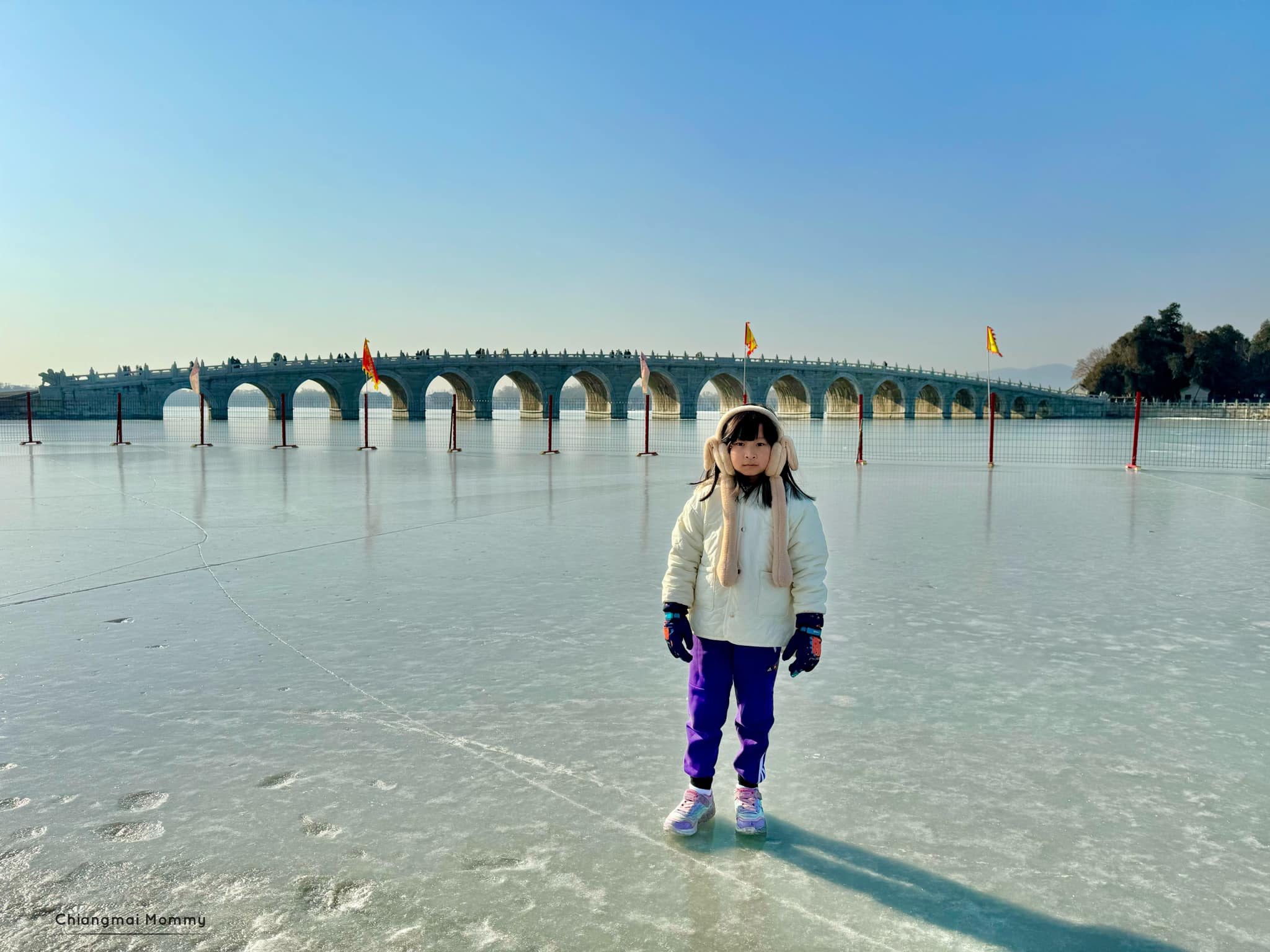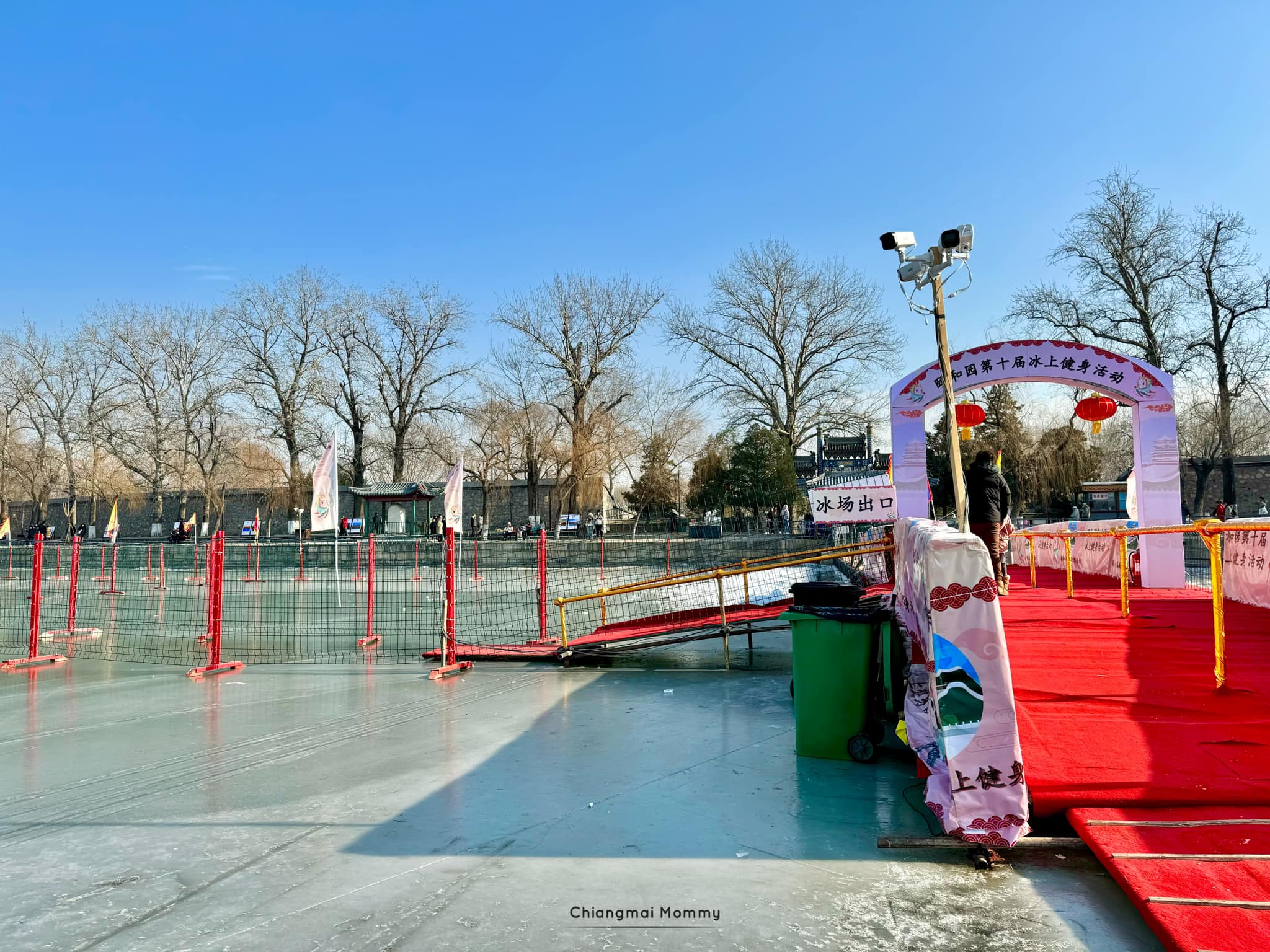 ถึงจะมาหน้าหนาวแต่กิจกรรมหน้าหนาวที่นี่ฟินมาก นั้นคือเล่นสเก็ตบนทะเลสาบน้ำแข็ง พื้นน้ำแข็งนี่เรียบและลื่นมากค่ะ เหมือนยืนบนกระจกเลยสวยได้บรรยากาศไปอีกแบบ ที่สำคัญคือกว้างมาก มีจุดลงหลายจุดเราเข้าทางประตู Minor Gate เข้ามาก็เจอสะพานเลยค่ะ (นั่ง Didi มานะคะ) ค่าบัตร ¥50 เด็ก ¥25 คนแก่มากกว่า 65 ปีเข้าฟรี คุณตาคุณยายบอกแก่แล้วมันดีงี้นี่เอง หลายๆที่ในจีนนี่คนแก่ฟรีหมดเลยนะคะ