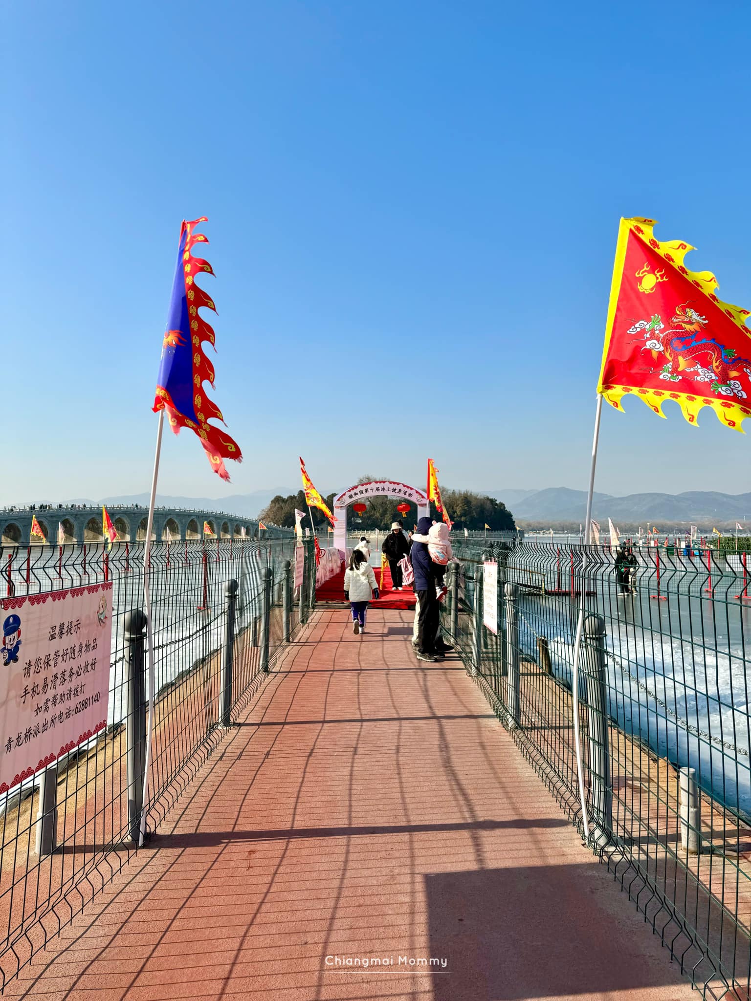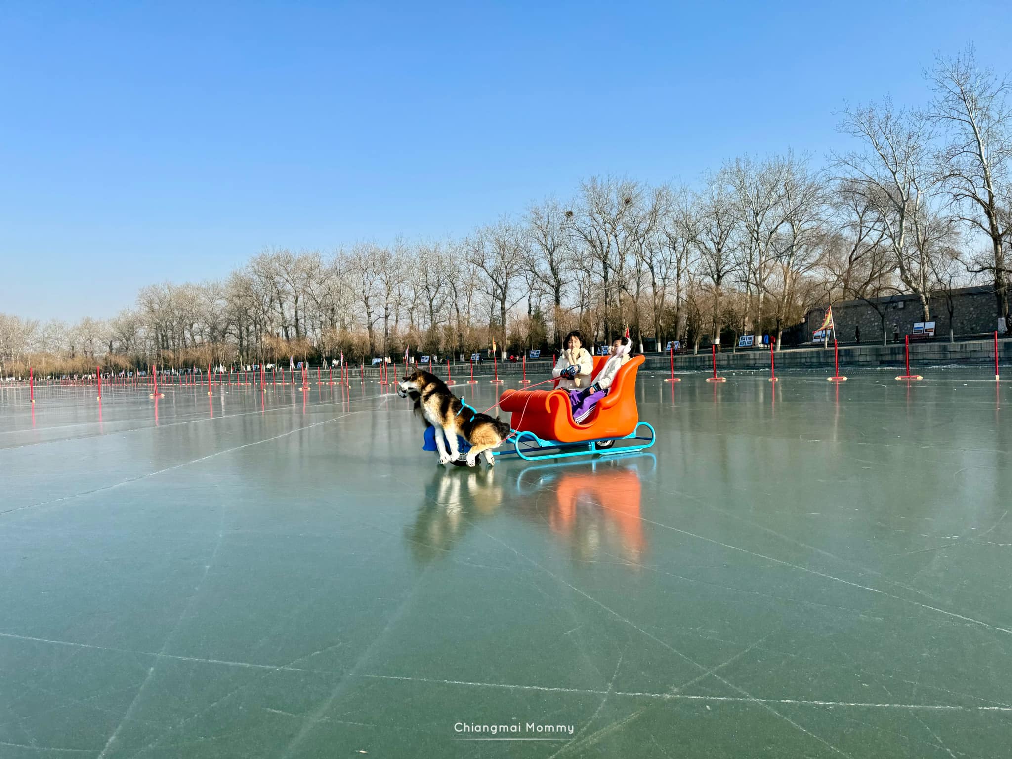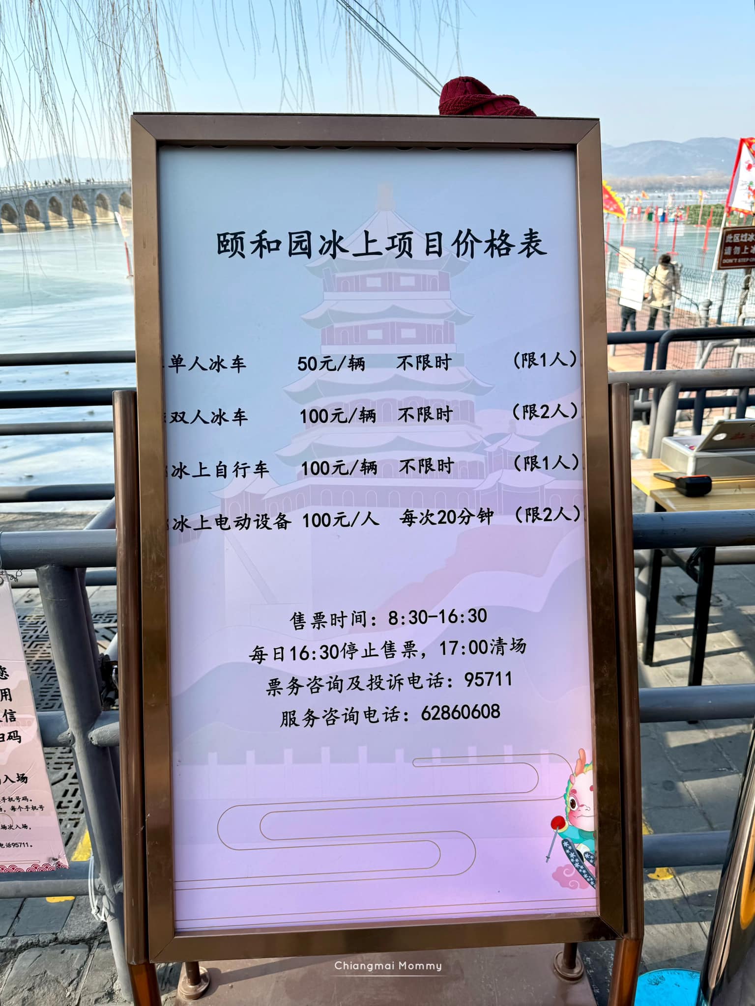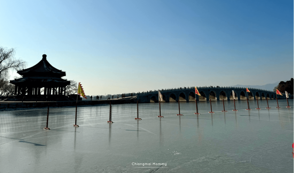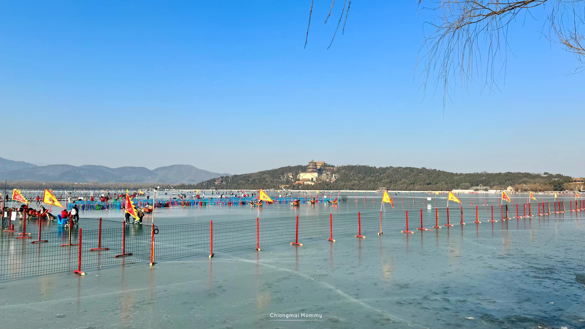 ถึงจะมาหน้าหนาวแต่กิจกรรมหน้าหนาวที่นี่ฟินมาก นั้นคือเล่นสเก็ตบนทะเลสาบน้ำแข็ง พื้นน้ำแข็งนี่เรียบและลื่นมากค่ะ เหมือนยืนบนกระจกเลยสวยได้บรรยากาศไปอีกแบบ ที่สำคัญคือกว้างมาก มีจุดลงหลายจุดเราเข้าทางประตู Minor Gate เข้ามาก็เจอสะพานเลยค่ะ (นั่ง Didi มานะคะ) ค่าบัตร ¥50 เด็ก ¥25 คนแก่มากกว่า 65 ปีเข้าฟรี คุณตาคุณยายบอกแก่แล้วมันดีงี้นี่เอง หลายๆที่ในจีนนี่คนแก่ฟรีหมดเลยนะคะ