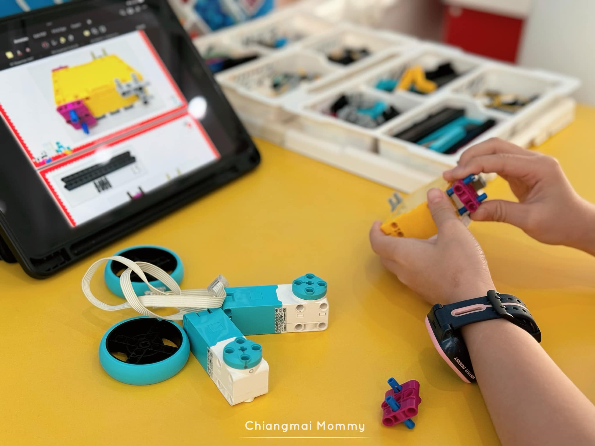 ปกติเราก็จะปูพื้นฐานของ Unplugged Coding ในวัยเบบี๋มาก่อน พอ 4 ขวบเริ่มใช้จอได้ ก็ฝึกเขียนโปรแกรมคำสั่งง่ายๆ ตามสไตล์เรา แม่เน้นเรื่องเรียนยังไงให้สนุก วันนี้แม่จึงพาเด็กๆมาทดลองเรียนที่ ClickRobot สาขา เชียงใหม่ดูค่ะ เพราะเห็นมีการสอนจาก Lego Spike แลดูน่าสนุกมาก