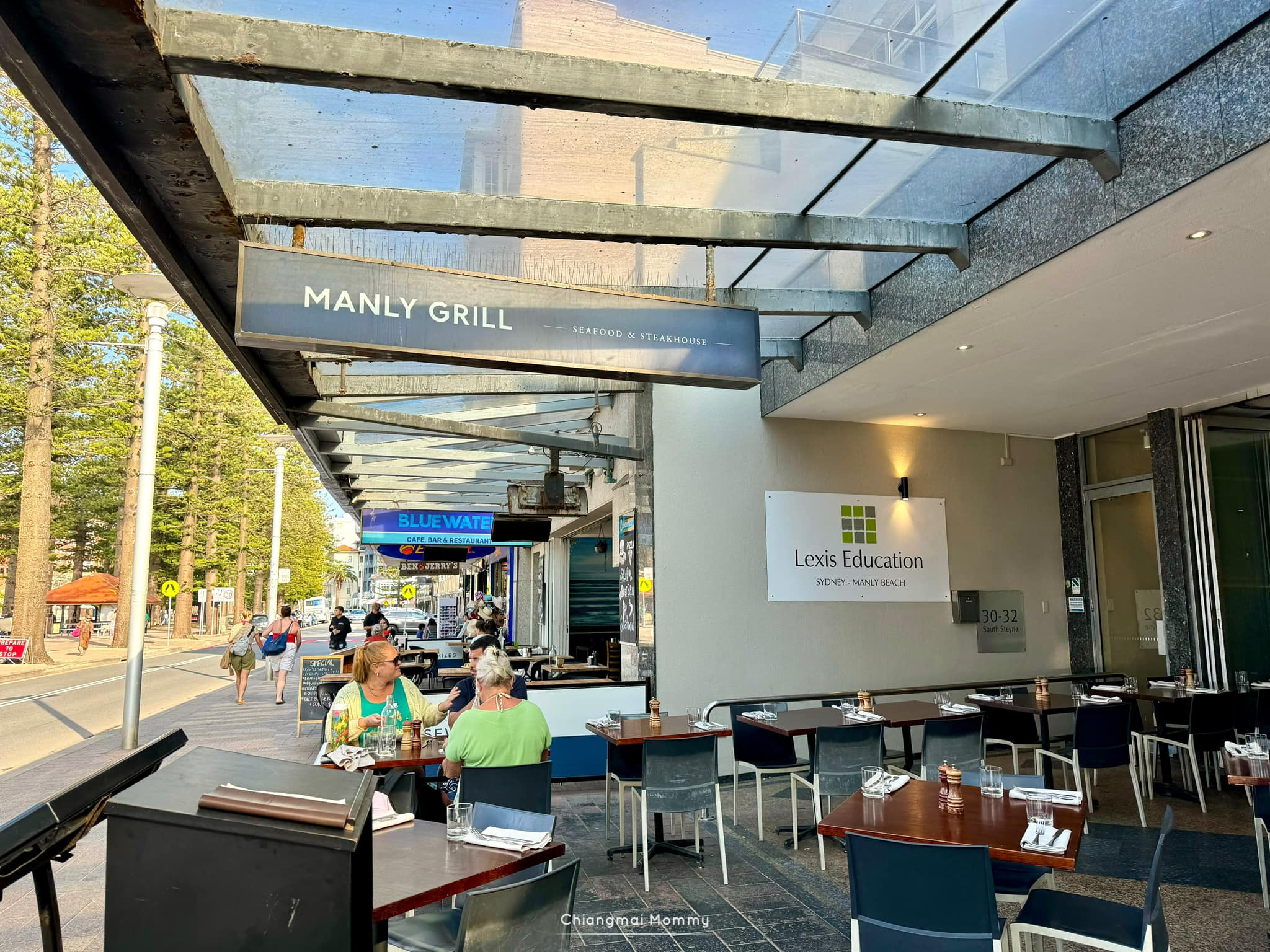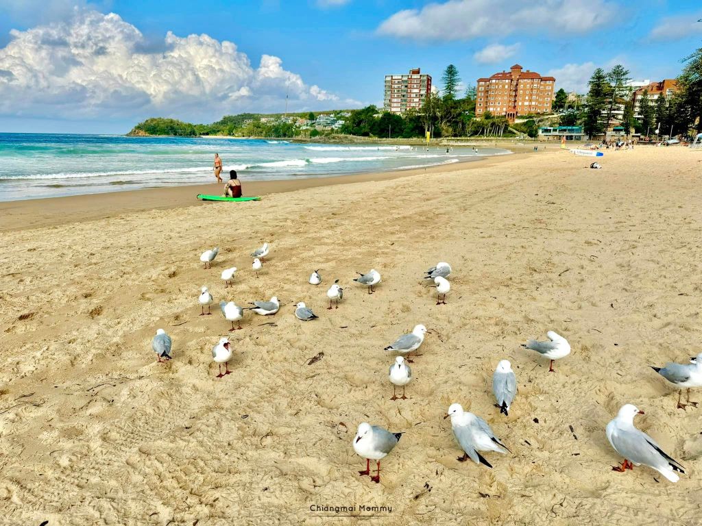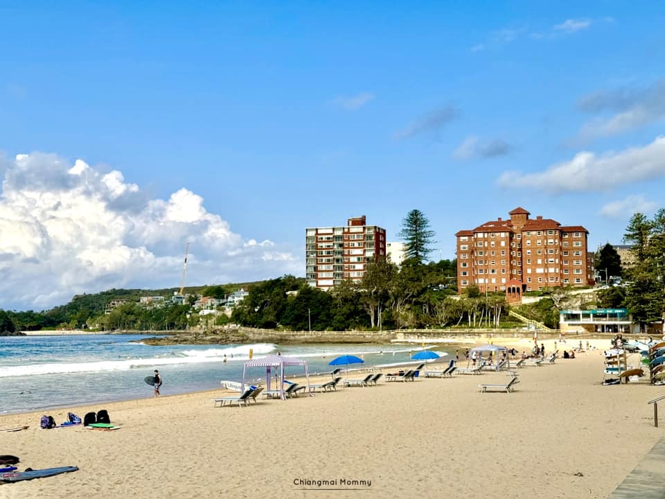 อันดับแรกคือนั่งเรือจาก Circular Quay ไปลงที่ Manly Wharf ค่ะ แตะบัตร Opal ได้เลยค่ะ ซึ่งจากท่าเรือเดินไปยังชายหาดแมนลี่แป๊บๆก็ถึง ซึ่งจะมีร้านให้ช้อปปิ้งเบาๆ รวมถึงมีสนามเด็กเล่นเล็กๆให้พักเล่นด้วยค่ะ ส่วนเราทานอาหารทะเลที่ Manly Grill อร่อยอยู่ค่ะ