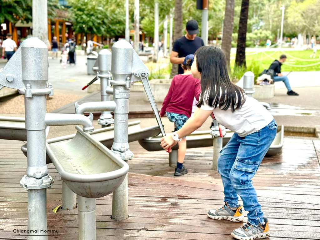 ที่เราชอบมากคือที่ Darling Park มีสนามเด็กเล่นชื่อ Tumbalong Park Playground ที่ใหญ่มาก มีจุดให้เล่นน้ำได้ด้วย มากี่ครั้งๆก็ต้องขอแวะมาเล่นที่นี่ ซึ่งเด็กๆก็จะเยอะมากๆเปิดให้เล่นทั้งวันทั้งคืนเลยค่ะ ไม่หมดแรงก็ไม่ต้องกลับ!! ![]()
