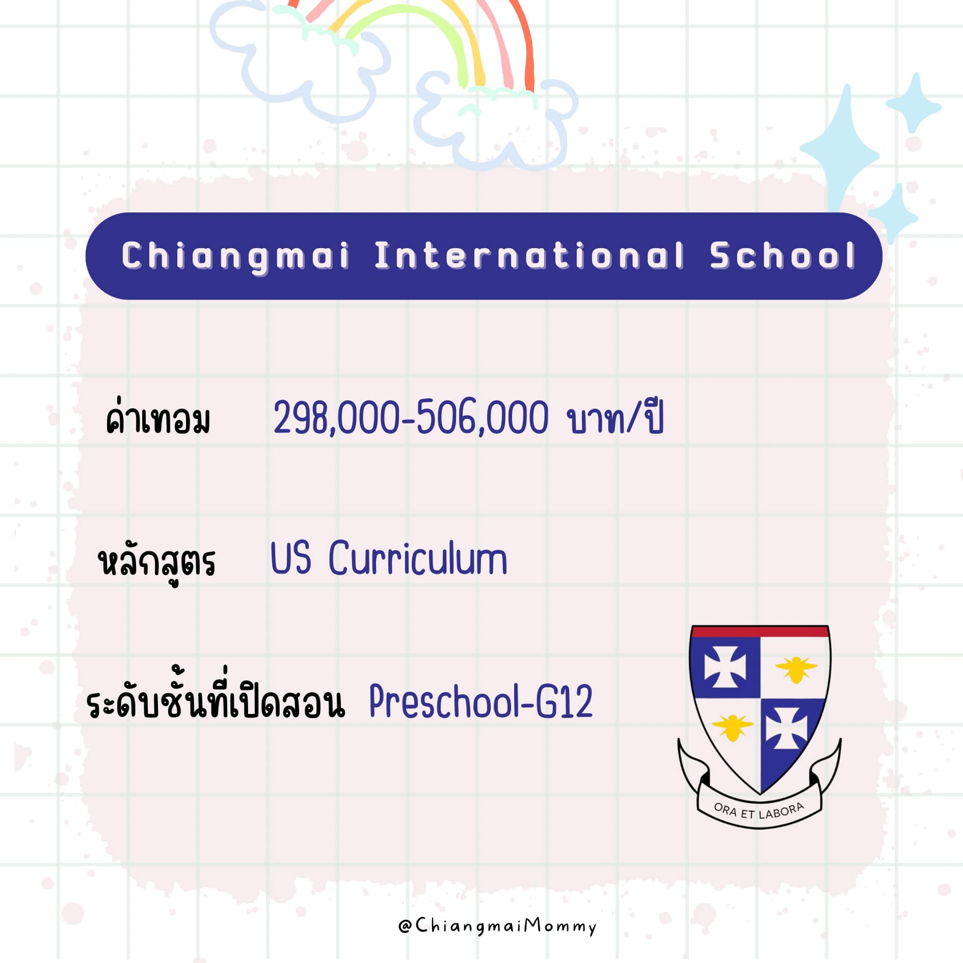 รวบรวมค่าเทอมโรงเรียนนานาชาติในจังหวัดเชียงใหม่ไว้ให้แล้วนะคะ อัพเดตของ 2024 ใครอยากได้ข้อมูลการศึกษาและหลักสูตรที่จดทะเบียนสามารถเช็คได้ในนี้ค่ะ![]()