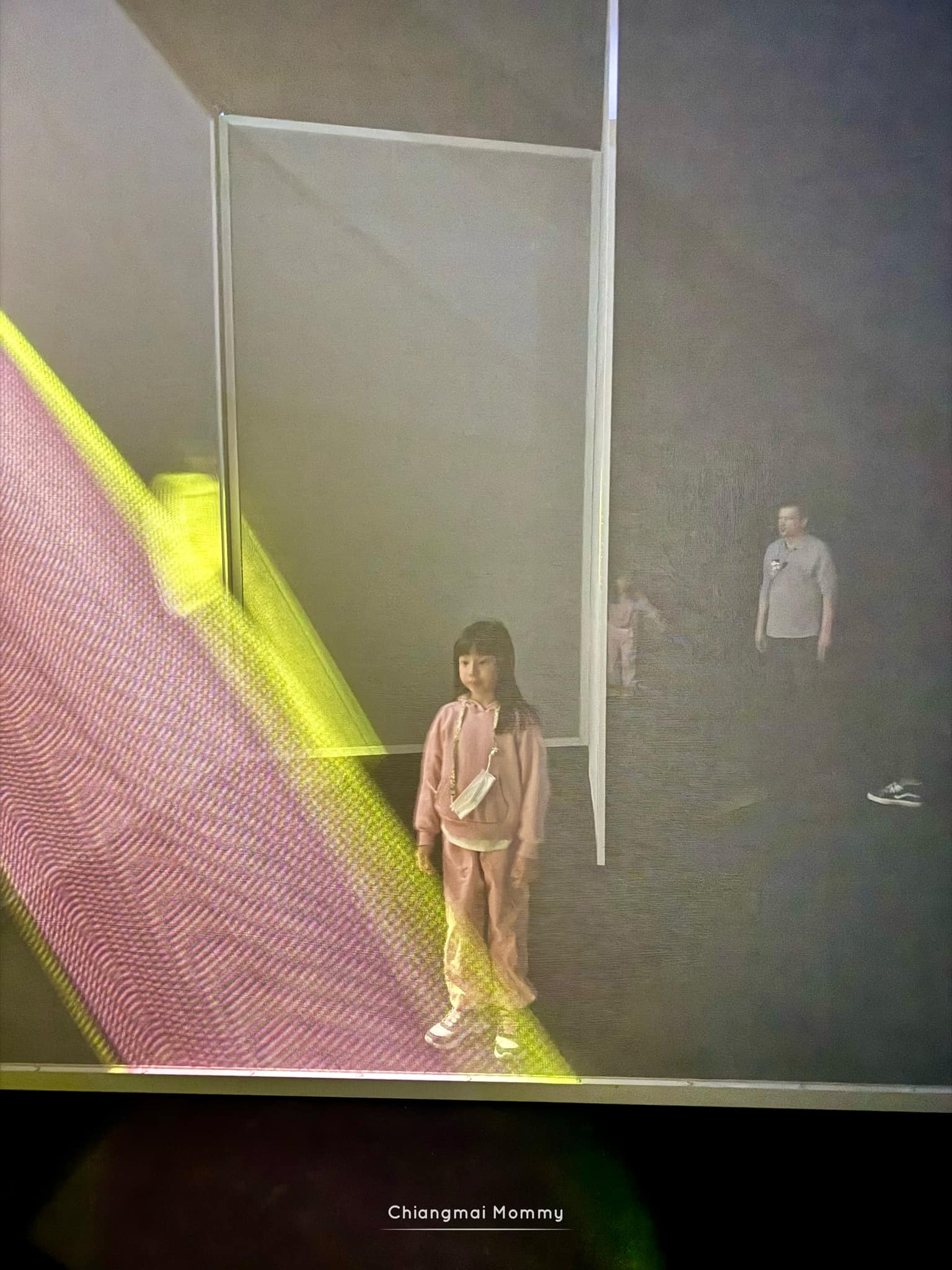 ด้านในมี 4 ห้อง แต่ละห้องไม่ได้ใหญ่มาก เป็นภาพฉายผลงานศิลปะซึ่งจะมีทั้งแสง สี เสียงประกอบในโชว์ค่ะ บางห้องเราก็สามารถช่วยระบายสีได้ด้วยค่ะ เด็กๆก็กวาดต้อนสีเหล่านี้ไปรวมๆกันเกิดเป็นรูปสวยๆ บนผนัง บางภาพก็ดุดัน บางภาพก็เศร้าใจ บางภาพก็สบายใจ มีหลากหลายอารมณ์มากค่ะ เพลินดีนะคะ ใครชอบศิลปะนี่ถูกใจเลย