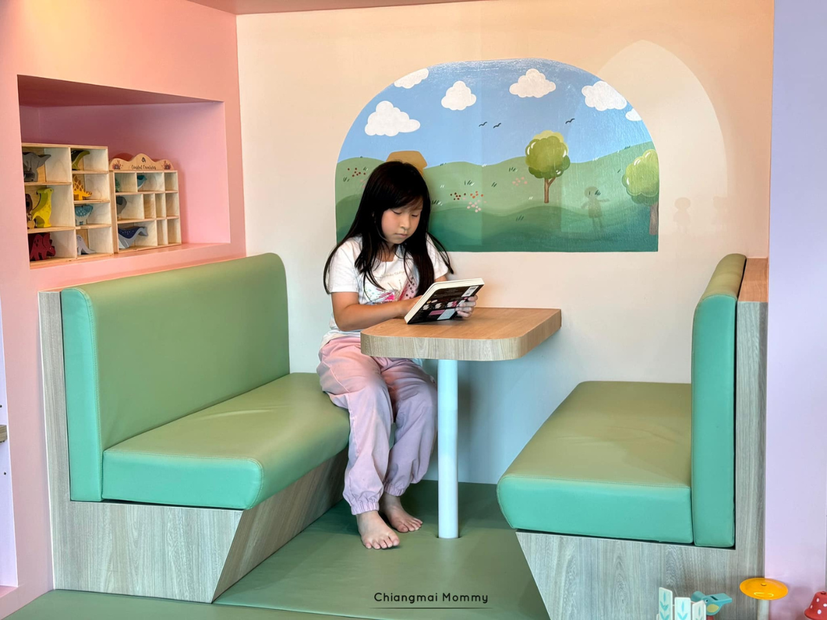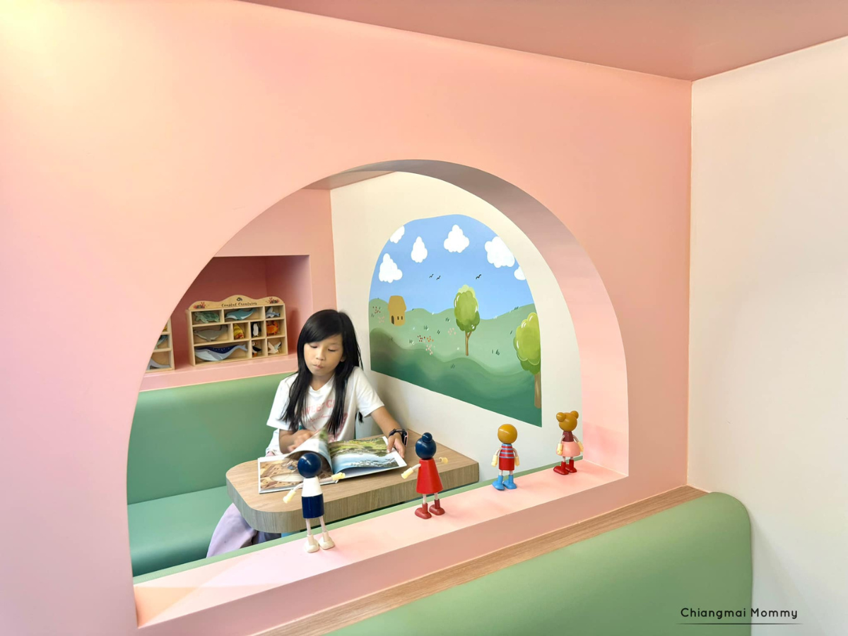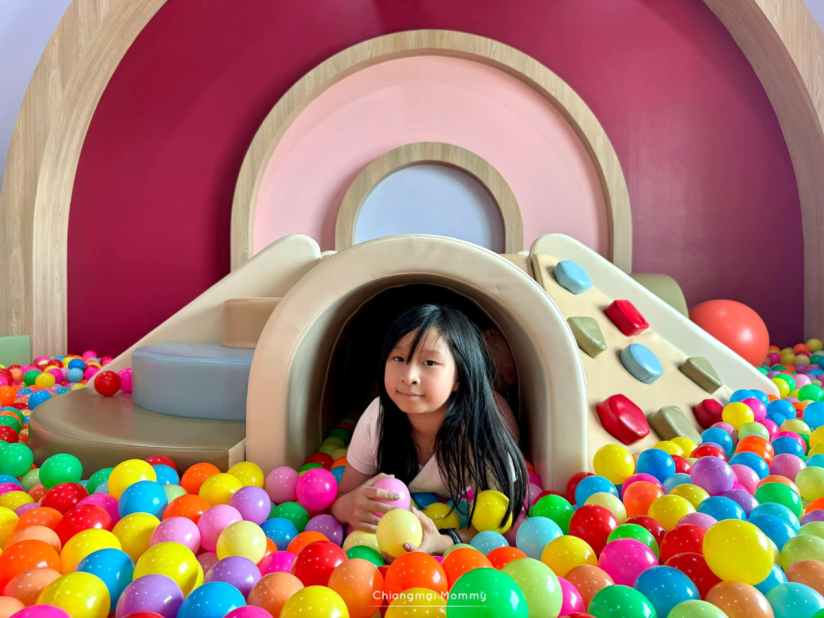 ที่นี่เป็น Playspace มีบ่อบอล อุโมงค์บอล สไลด์เดอร์ ปีนป่าย แทรมโพลีนขนาดเล็ก มุมของเล่นตามจินตนาการ พัฒนาทักษะต่างๆ มีมุมนั่งอ่านหนังสือที่เหมือนเด็กๆนั่งบนรถไฟเลยค่ะ น่ารักมากๆ ของเล่นต่างๆทำมาจากธรรมชาติ จัดวางบนพื้นที่ปลอดภัย โดยออกแบบให้มองเห็นเด็กๆอยู่ในสายตาตลอดเวลา แม่สามารถปล่อยให้วิ่งเล่นเองแบบสบายใจได้เลยค่ะ ที่นี่คือเหมาะกับเด็กเล็กโดยเฉพาะ ซึ่งจะมีค่าเข้าเป็นชั่วโมงหรือจะปล่อยทั้งวันเหมาๆก็ได้นะคะ