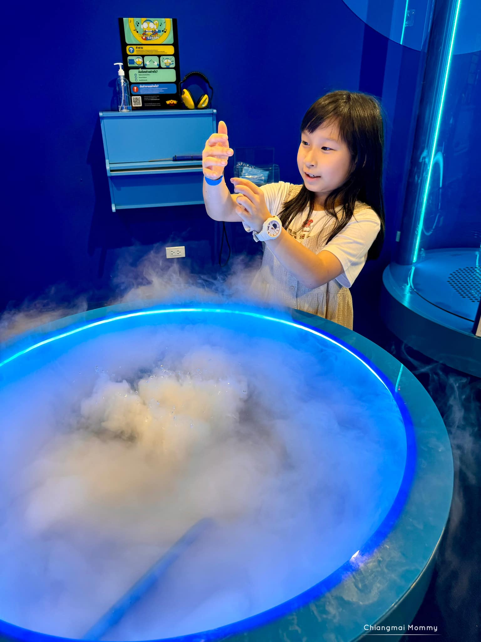 ที่นี่จะมี 2 ส่วนคือส่วนดูโชว์ และส่วนเดินชมนิทรรศการ โดยนิทรรศการจะเปิดเป็นรอบๆ ตามเวลา ซึ่งต้องจองล่วงหน้านะคะ จะมีพี่ๆสตาฟพาทัวร์ซึ่งจะมีให้เลือก 2 ภาษา จะเลือกดูโชว์ก่อนหรือจะเดินเที่ยวก่อนก็ได้ค่ะ ซึ่งพี่ๆจะอธิบายปรากฏการณ์ต่างๆทางวิทยาศาสตร์ให้เด็กๆได้เรียนรู้ผ่านกิจกรรมสนุกๆ มีถึง 40 จุดที่ให้ได้เล่นค่ะ