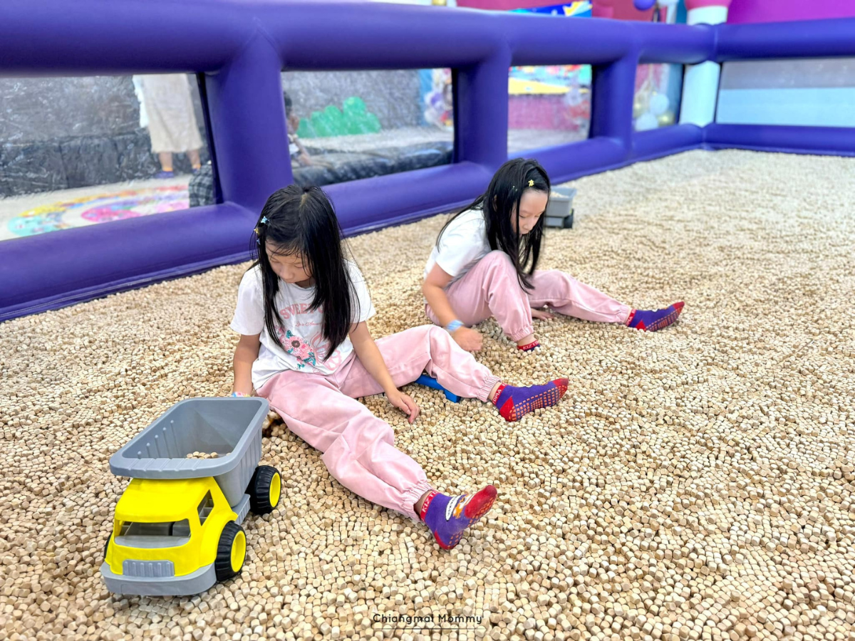 โซน 6 : Eli’s Sandpit : บ่อทรายสำหรับเด็กน้อยที่มีเครื่องเล่นลมขนาดจิ๋ว อุปกรณ์ชั่ง ตวง วัด ขุดกันสนุกได้ทั้งวันไม่มีเบื่อ ซึ่งทรายก็จะเป็นบล็อกไม้ขัดมุมขนาดเล็ก ปลอดภัยไม่เลอะเทอะนะคะ