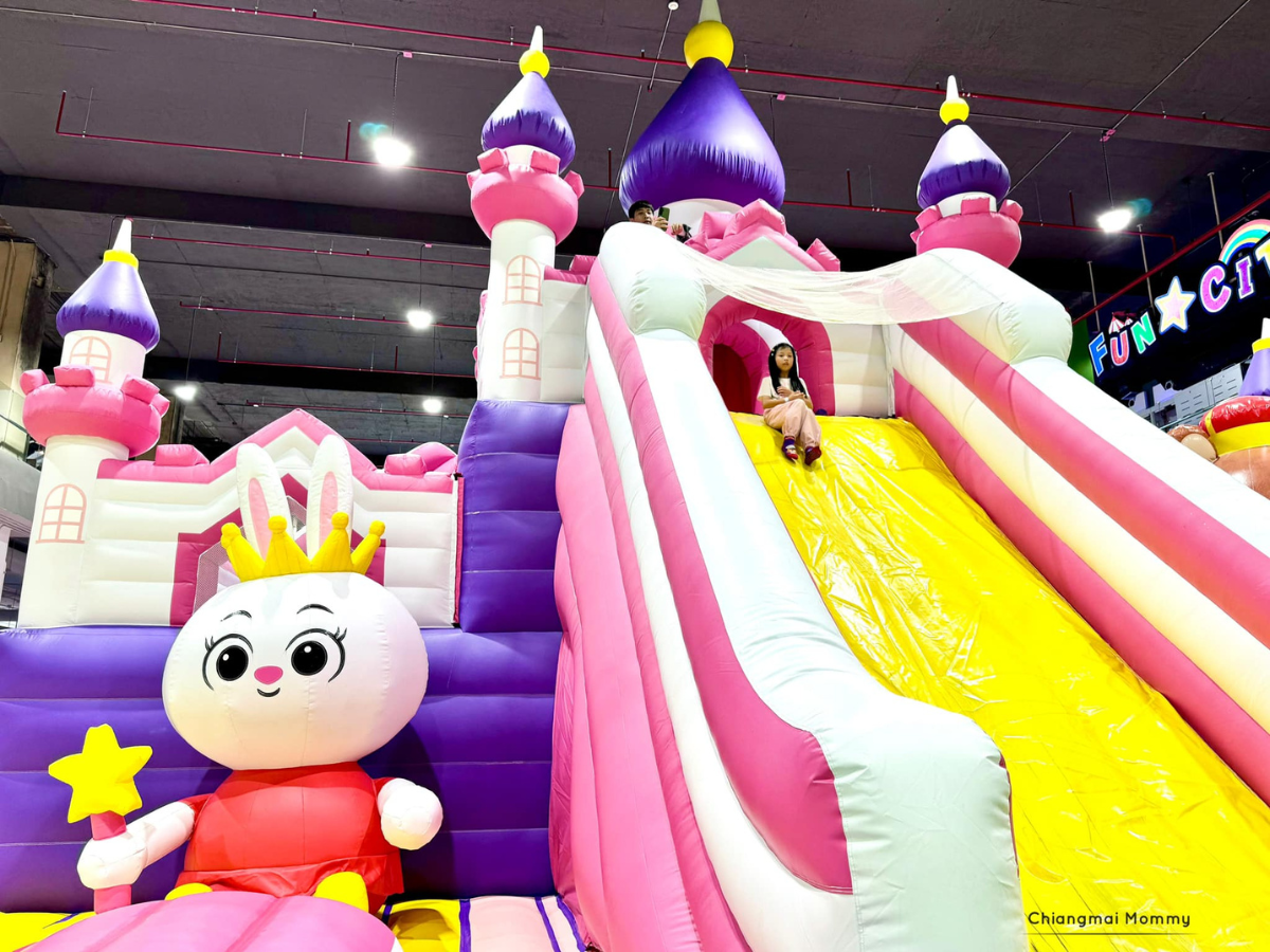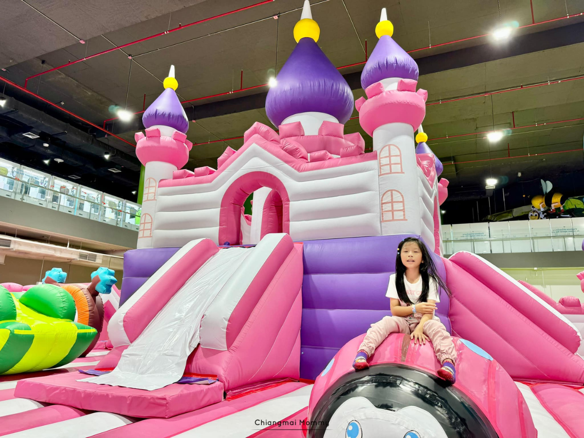 โซน 2 : Bell and Raby Royal Castle : บ้านลมธีมปราสาทเจ้าหญิงสีชมพูน่ารัก พร้อมที่ปีนป่ายให้เข้าไปในตัวปราสาทและสไลด์เดอร์ขนาดใหญ่ ยังมีรถฟักทอง เก้าอี้ราชา ดาบขนาดยักษ์ให้วิ่งเล่นสนุกๆค่ะ