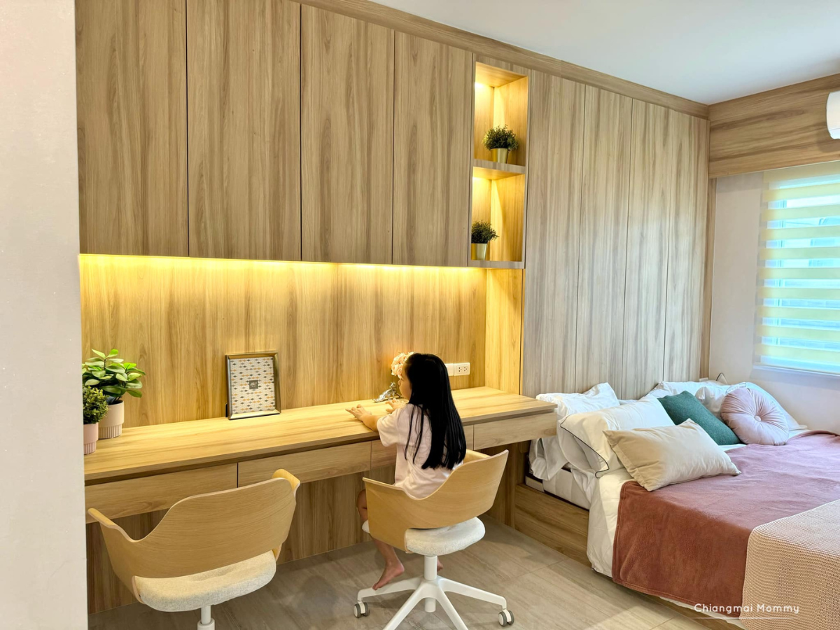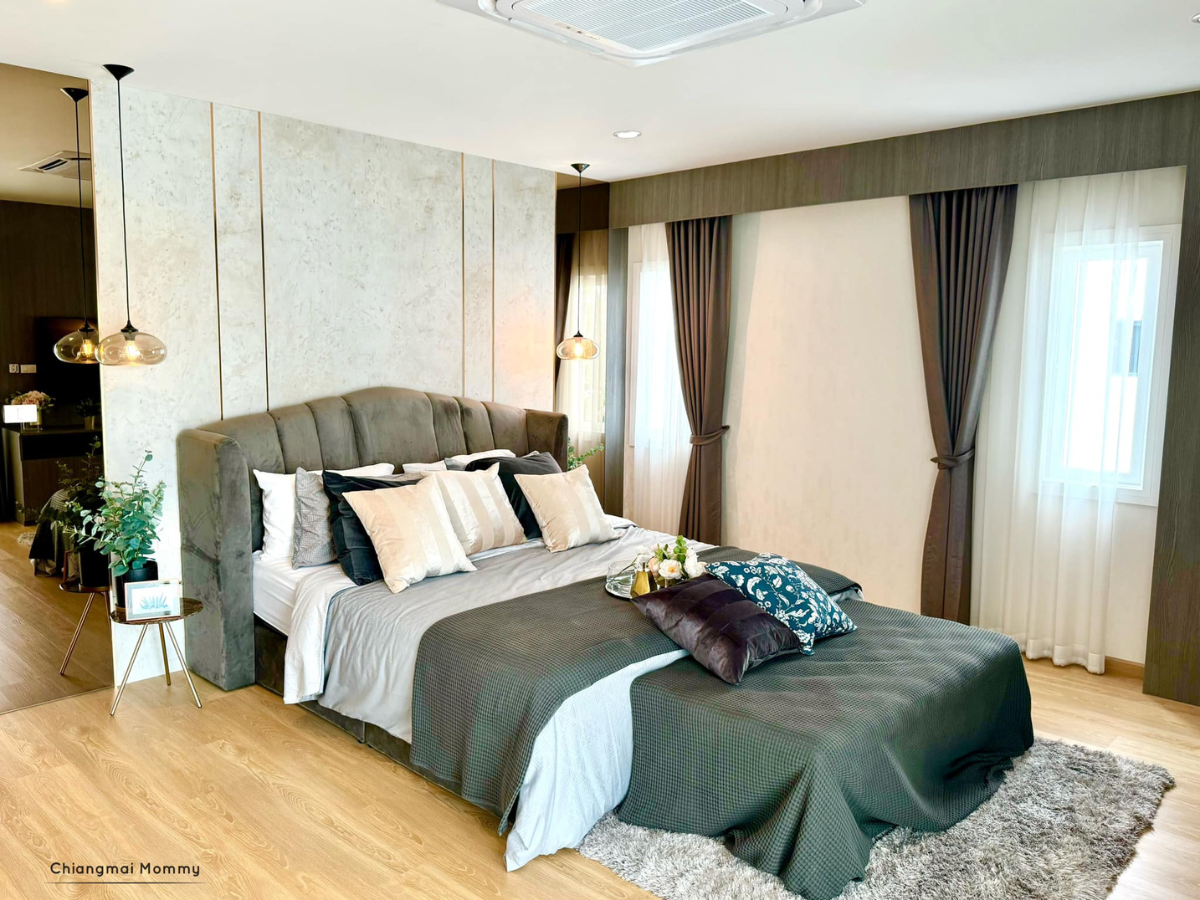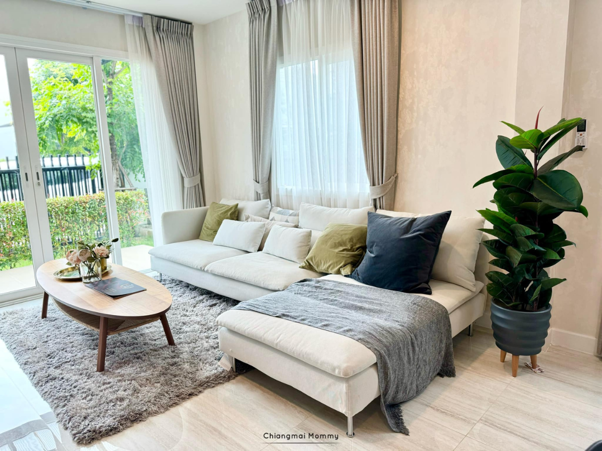 ที่นี่เป็นบ้านเดี่ยว 2 ชั้น ใจกลางเมืองเชียงใหม่ สไตล์ Modern ซึ่งบ้านสไตล์นี้ถูกใจแม่อ่ะค่ะ เพราะหาเฟอร์นิเจอร์แต่งบ้านง่าย ตกแต่งแบบไหน ธีมไหนก็ดูน่าอยู่ไปหมด ตัวบ้านออกแบบพื้นที่ใช้สอยคุ้มค่า ทุกหลังมีพื้นที่สนามหญ้า สามารถแต่งสวนน่ารักๆให้เด็กๆวิ่งเล่นออกกำลังกายได้ด้วยนะคะ ดังนั้นตัวบ้านในโครงการแต่ละหลังจะไม่ติดกันเกินไปจนอึดอัดค่ะ พวก Facilities ภายในโครงการก็จะมีสวนสาธารณะวิวดอยสุเทพ ระบบรักษาความปลอดภัย กล้องวงจรปิด คลับเฮาท์ สระว่ายน้ำเกลือที่แยกสระเด็ก สระผู้ใหญ่ให้ค่ะ