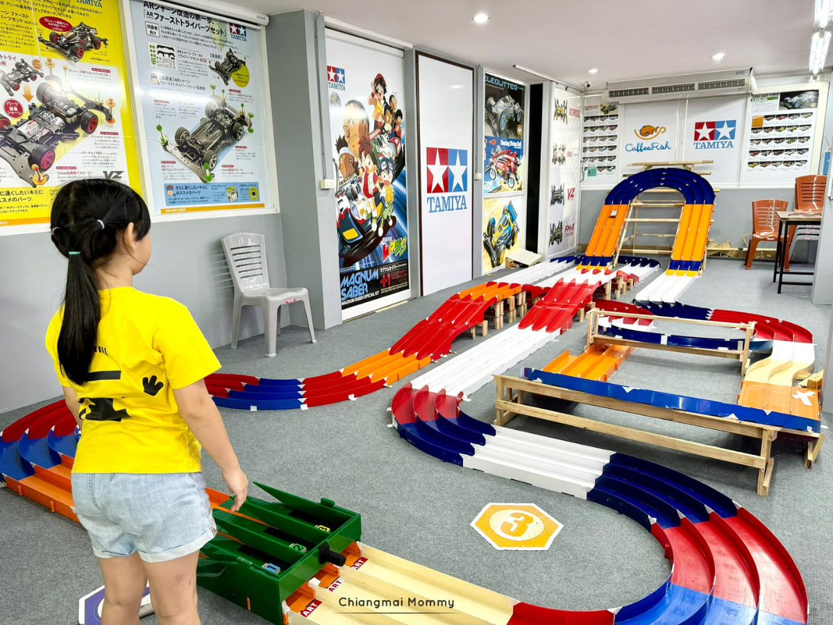 ห้อง Tamiya ที่ปรับลานวิ่งโฉมใหม่ ท้าทายกว่าเดิม กับเส้นทางโค้งที่สูงกว่า 1 เมตร พร้อมสะพานโค้งที่จัดให้นักแข่งปรับแต่งรถให้แรงพร้อมวิ่งฉิวแบบไม่หลุดโค้ง สนุกมากกกกก