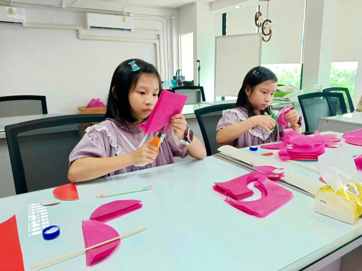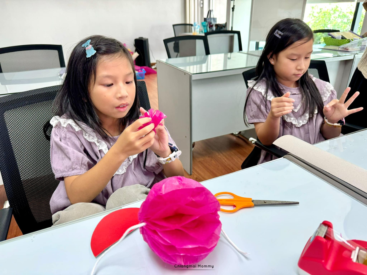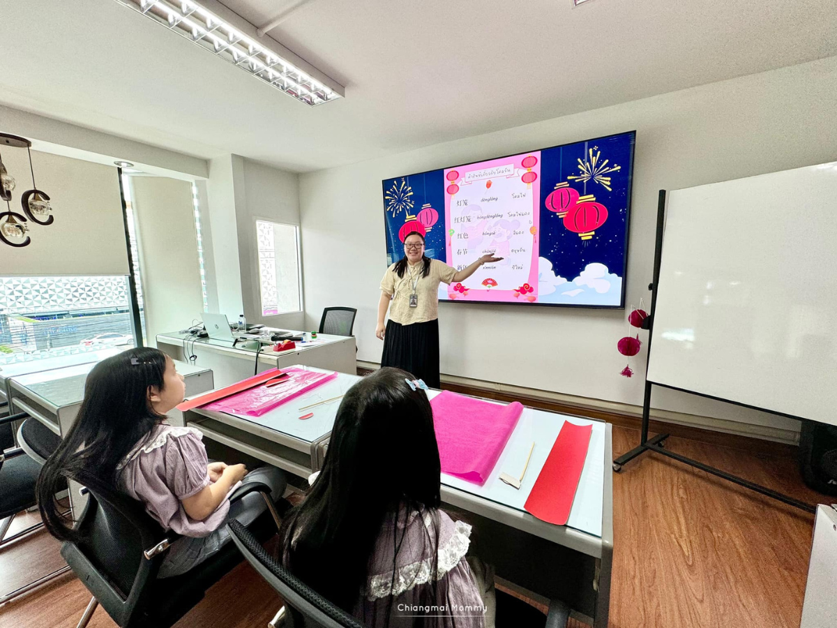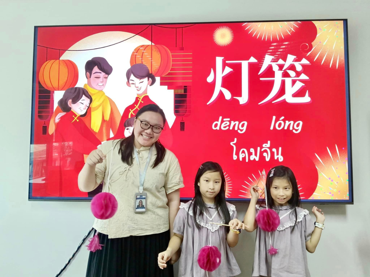 นอกจากนั้นเพื่อให้เด็กๆสนุกกับการเรียน ยังมีกิจกรรมแลกเปลี่ยนวัฒนธรรม อย่างวันนี้ได้ทำโคมจีน ที่ใช้เฉลิมฉลองในวันปีใหม่ด้วยค่ะ ซึ่งเด็กๆจะเรียนคำศัพท์ต่างๆเกี่ยวกับเทศกาลนี้ผ่านงานประดิษฐ์โคม และเรียนรู้วัฒนธรรมของเจ้าของภาษาอย่างลึกซึ้ง ช่วยกระตุ้นการเรียนการสอนเป็นอย่างดี