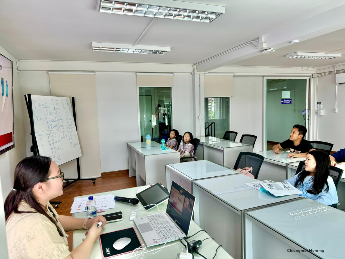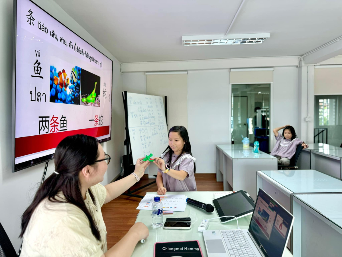 โดยวันนี้เด็กๆได้มาทดลองเรียนภาษาจีน สำหรับเด็กระดับกลาง ซึ่งจะเป็นกลุ่มเด็ก 6-12 ปี ซึ่งคอร์สนี้มีทั้ง Onsite และ Online สอนสดโดยเหล่าซือ (คุณครู)เจ้าของภาษา ภายในโรงเรียนจะมีห้องเรียนหลายห้องมากแต่ละห้องกว้าง สะอาด แสงสว่างเพียงพอ บรรยากาศเหมาะกับการเรียนการสอนมาก ในคลาสจะเป็นกลุ่มเล็กๆเพียง 4-6 คน ทำให้การเรียนการสอนทั่วถึง และไม่อึดอัด เหล่าซือใจดีมาก มีจิตวิทยาเด็ก มีการคุย-ถามตอบกับเด็กๆในห้องอย่างเป็นกันเอง ดังนั้นเด็กในห้องจึงกล้าคุย กล้าใช้ภาษาจีนแบบไม่เคอะเขินค่ะ