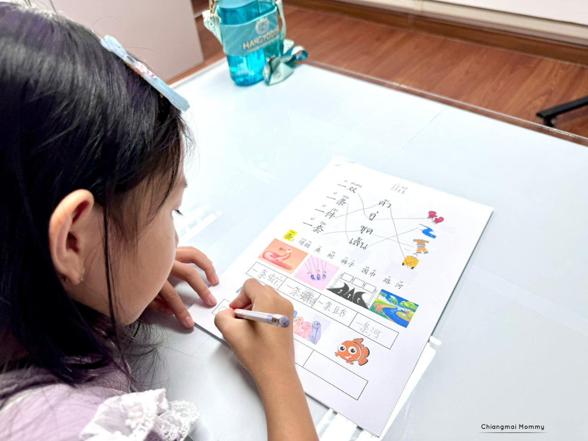 โดยในเริ่มแรกเหล่าซือจะทบทวนคำศัพท์ของอาทิตย์ที่ผ่านมาซึ่งในหลักสูตรตอนสมัครเรียนจะมีแจ้งว่าเด็กๆจะได้เรียนเนื้อหาอะไรบ้าง แม่ว่าหลักสูตรเค้าชัดเจนดีค่ะ (อันนี้ที่ลงจะเป็นคอร์สเรียนกลุ่มนะคะ แต่ถ้าสนใจเรียนส่วนตัว สอนการบ้านหรือติวสอบ สามารถออกแบบและจัดตารางเวลาที่สะดวกได้ค่ะ ยืดหยุ่นมากๆ) ในคลาสจะครบทั้งฟัง-พูด-อ่าน-เขียน ทบทวนและทำแบบฝึกหัด ซึ่งด้วยจำนวนคนน้อยแบบนี้ เหล่าซือจะเรียกถามจนครบทุกคน เด็กๆได้ฝึกพูดภาษาจีนแน่นอนเลยค่าาา ที่สำคัญมีวัดผลการเรียนเด็กๆอย่างสม่ำเสมอ ทำให้เป็นการเรียนที่สามารถนำไปใช้งานได้จริง