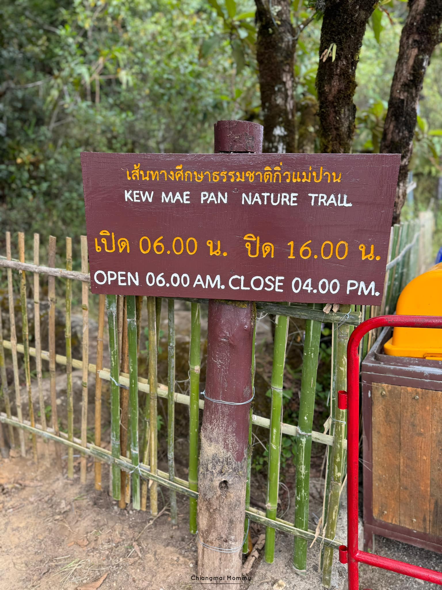 เส้นทางเดินศึกษาธรรมชาติที่นี่เป็นจุดที่เด็กๆสามารถเดินได้ค่ะ โดยจะเดินวนเป็นวงกลม เริ่มแรกขับเข้ามาจอดรถที่กิ่วแม่ปานแล้วลงทะเบียนที่ด้านใน เป็นระบบ Walk-in ไม่ต้องจอง แต่จะต้องมีไกด์เดินไปด้วยค่ะ 1 กลุ่ม 200 บาท จ่ายกับไกด์เมื่อเดินเสร็จซึ่งจะบวกทิปก็แล้วแต่เราค่ะ