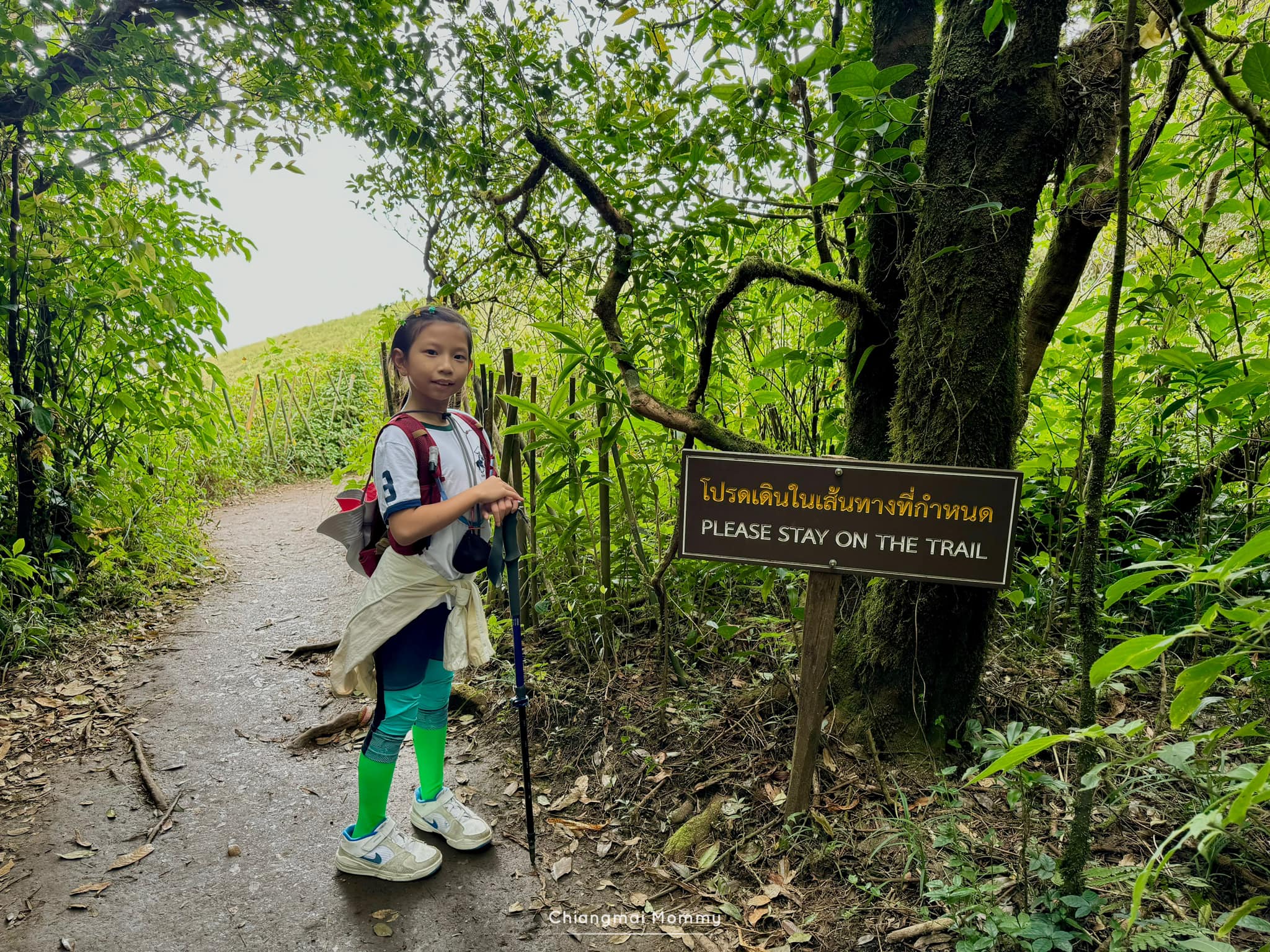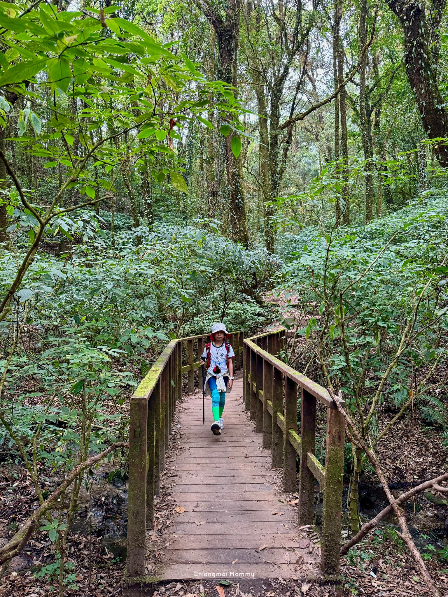 ระยะทางที่เดินประมาณ 3.5 km สั้นๆไม่มีห้องน้ำ มีทั้งเดินในป่า เดินผ่านทุ่งหญ้ากึ่งอัลไพน์ ขึ้นเขา ลงเขาข้ามน้ำตก ลำธาร ซึ่งจะเดินหนักแค่ขึ้นบันไดช่วงหลังค่ะ แต่ถ้าเลือกเดินแบบไป-กลับทางเดิมจะสบายกว่าเดินเป็นวงกลมค่ะ ถ้าเด็กๆเดินไหว การเดินวนให้ครบรอบเด็กๆ จะได้เห็นจุดเรียนรู้ครบทุก 15 ฐานที่แตกต่างกันไป