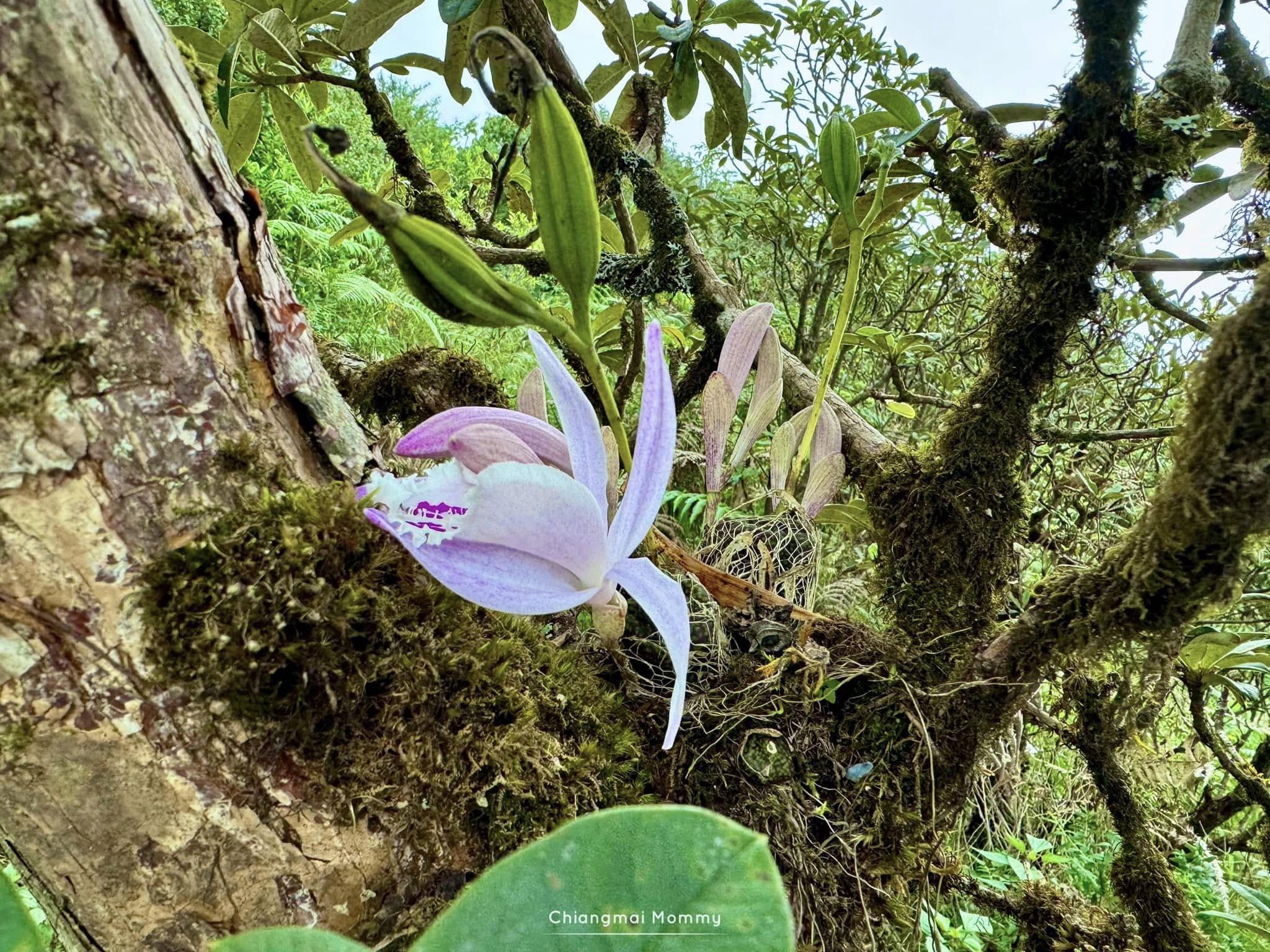 เราเลือกเดินที่กิ่วแม่ปานค่ะ เพราะเพิ่งเปิดป่าใหม่ๆเมื่อวันที่ 1 พฤศจิกายน 2567 ที่ผ่านมาเองค่ะ ต้นไม้ยังมีมอสและเฟิร์นเขียวๆ ให้ชื่นใจ และวันนี้ท้องฟ้าปิดมีเมฆฝนหน่อยๆ อากาศเลยเย็นมากถึง 16 องศาเดินสบายค่ะ ถึงจะท้องฟ้าปิดแต่หมอกลอยผ่านหน้าแบบฟินมากกกกก~