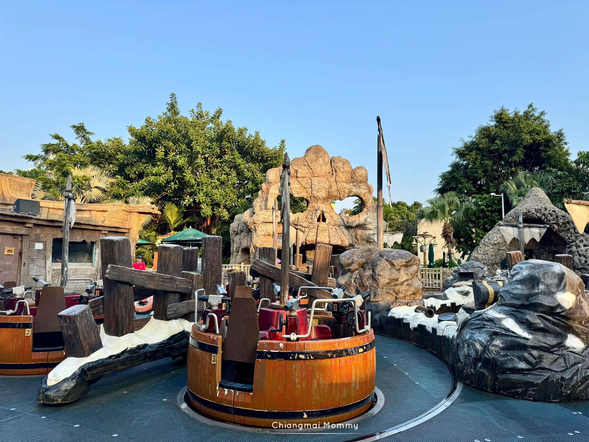 โซนนี้ยังมีเครื่องเล่น Battle of the Pirates ซึ่งต้องซื้อเสื้อกันฝนพร้อมกันรองเท้าเปียก ชุดละ 20 หยวน แต่บางคนก็เตรียมมาจากบ้านได้นะคะ สามารถเอาไว้เล่นกับเครื่องเล่นอื่นด้วยค่ะ จำเป็นมากต้องมีค่ะ เล่นไป 2 รอบเบราๆ