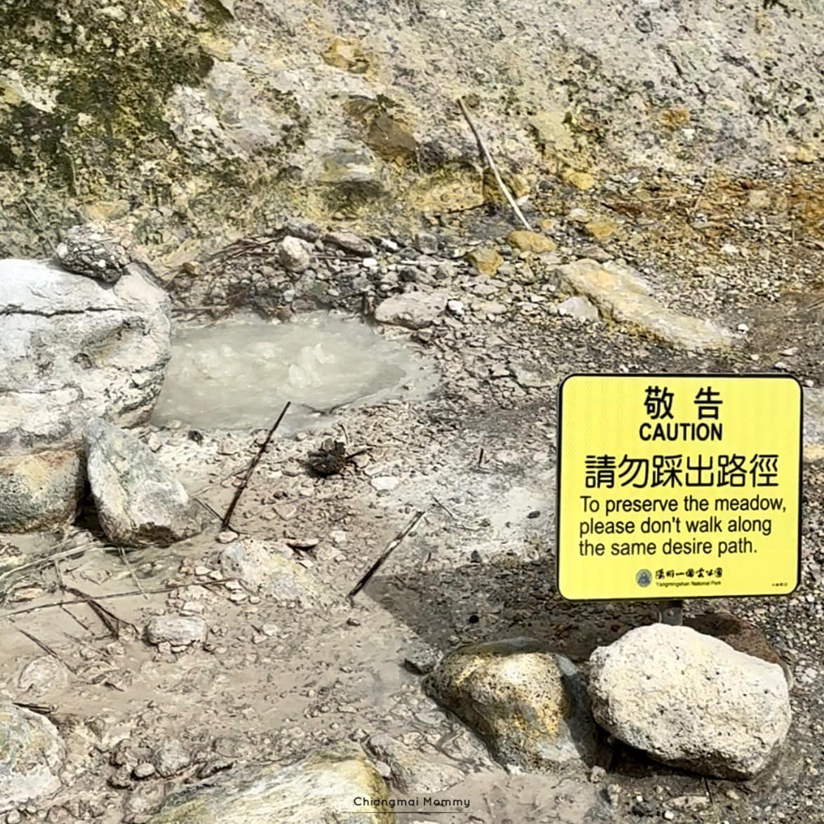 小油坑硫氣孔 ไฮไลท์ของการเที่ยวอุทยานหยางหมิงซาน ก็คือจุดที่เป็นพื้นที่ภูเขาไฟที่แม้จะมอดดับแต่ยังมีไอร้อนพุ่งออกมาจากหลุมและปล่องพื้นดินที่เรียกกันว่า Fumaroles