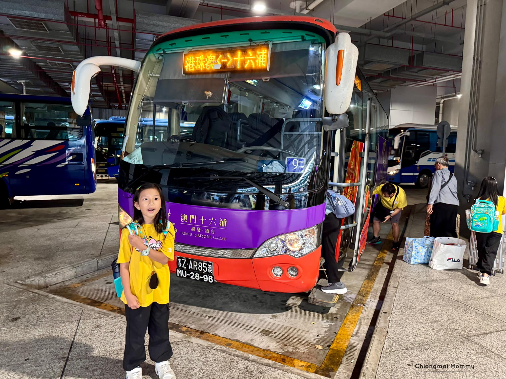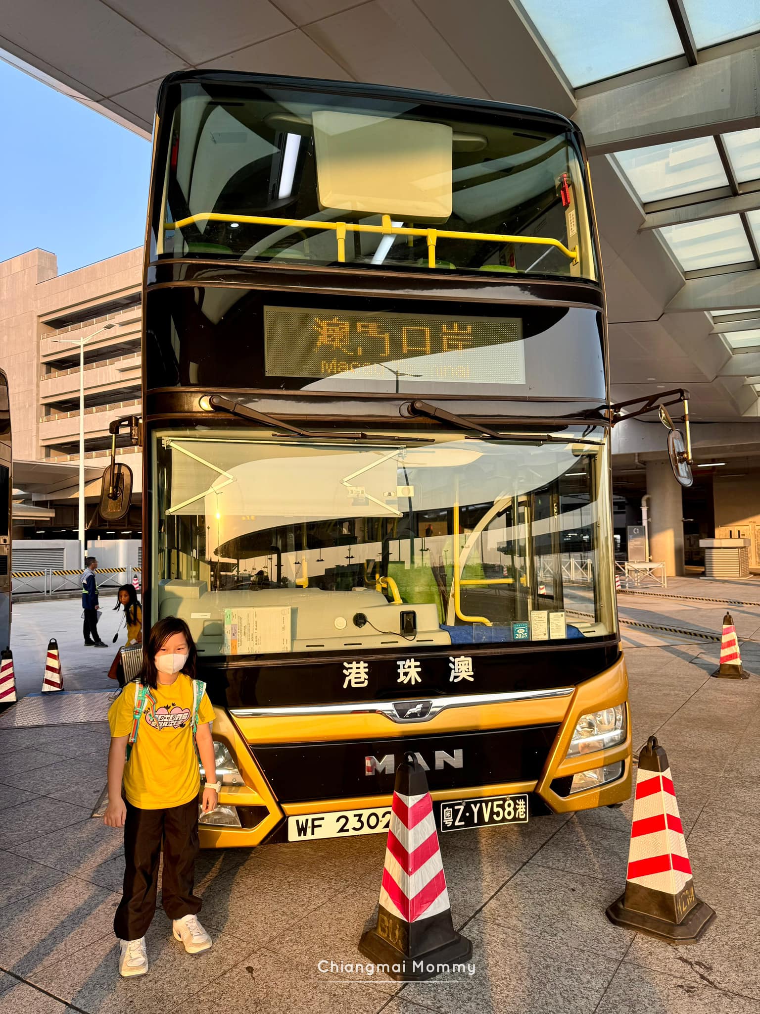 จริงๆรถบัสจะมี 2 แบบคือ Shuttle bus จะนั่งข้ามสะพานเท่านั้น อีกแบบจะเป็น Cross-Boundary Coach ซึ่งอันนี้รับส่งหน้าโรงแรม นั่งรถรับตามโรงแรมต่างๆ ซึ่งต้องจองล่วงหน้าแล้วพอถึงด่านจะต้องเดินลงมาผ่าน ตม. แล้วกลับมานั่งรถคันเดิมเพื่อเข้าเมือง (เราเคยนั่งจาก Venetian Hotel ไปลง Prince Edward ก็สะดวกคนละแบบไม่ต้องหารถไปด่านข้ามเขตเอง)