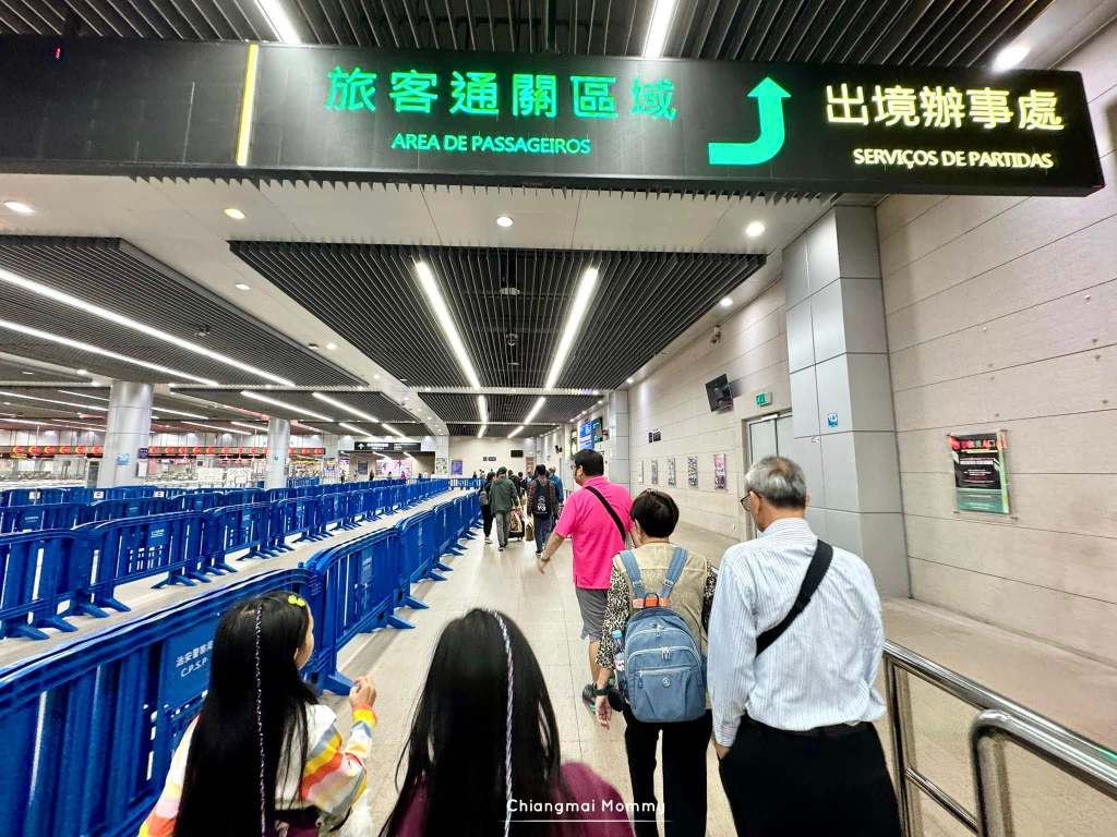 พอไปถึงด่านฝั่งมาเก๊า (Macao HZMB Port) เดินลงรถแล้วจะมีทางแยกให้เดิน เราไปมาเก๊าก็ออกทางมาเก๊า ส่วนใครจะไปจูไห่ก็เดินไปอีกฝั่งนะคะ แล้วก็ผ่าน ตม.ฝั่งขาเข้าของใครของมันอีกรอบเป็นอันข้ามแดนเรียบร้อย