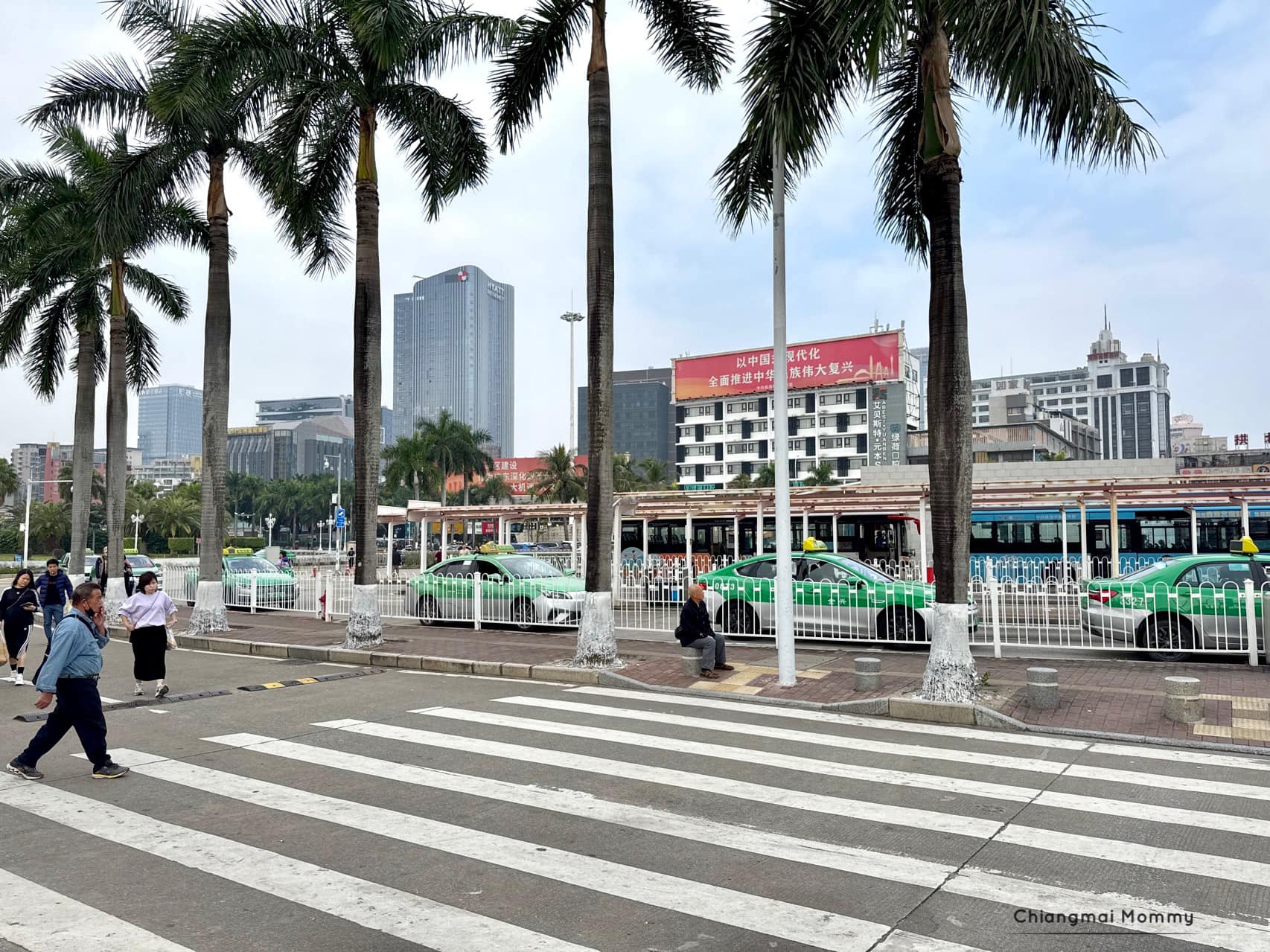 ด้านใต้ดินจะเป็นแหล่งช้อปปิ้งของราคาถูกใหญ่มาก เราเดินหันหน้าไปทางถนนเดินออกขวามือไปจุดขึ้นแท็กซี่ เพื่อไปสวนสนุกนะคะ คนจีนข้ามกันเยอะที่สุดละค่ะ ดีที่มีช่องเฉพาะคนจีนคิวเลยไม่ยาวมากค่ะ ขากลับก็เหมือนเดิมค่ะเดินข้ามง่ายมากๆ