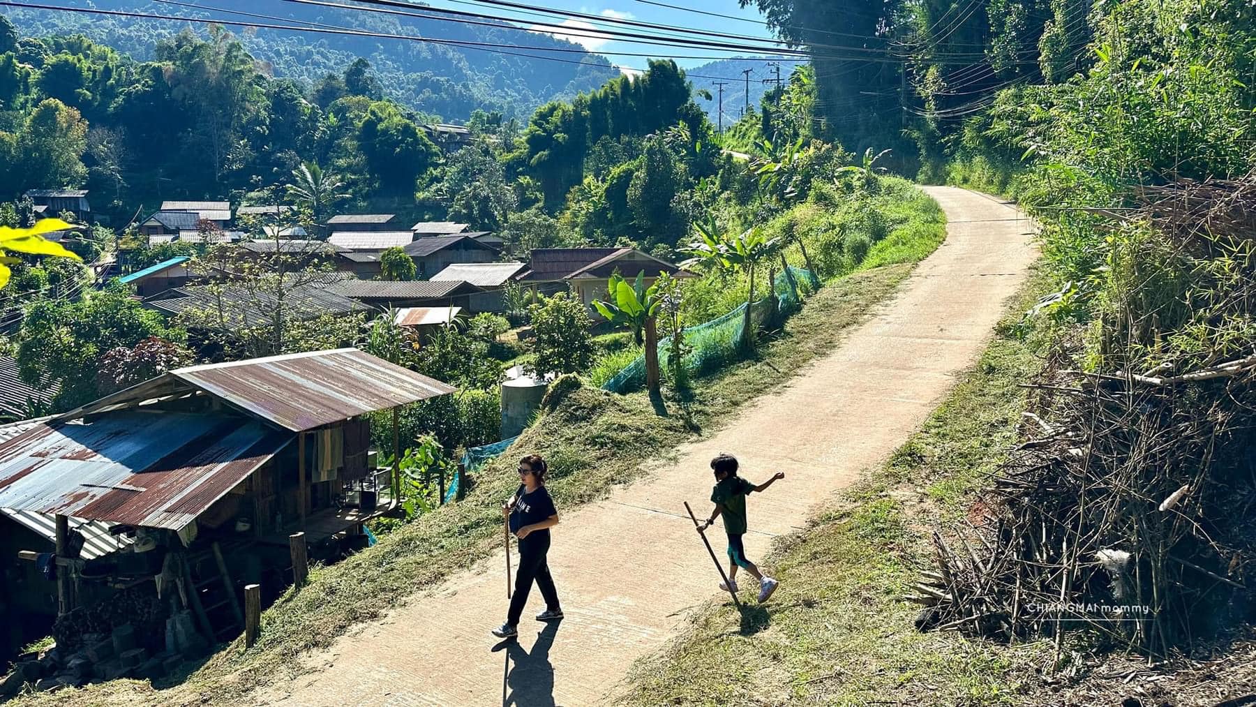นี่แม่ก็พาเด็กๆเดินกันจนจบเส้นทางไปสุดที่หมู่บ้าน ชิมชากาแฟที่คั่วบดเอง ชมการทอผ้าพื้นบ้านจุดนี้ไม่มีร้านอาหารนะคะ ต้องเดินลงไปสัก 1 กิโลเมตรจะมีร้านค้าบริการค่ะ จากนั้นก็จ้างรถกะบะชาวบ้าน (มีบริการ 150B) กลับไปยังจุดจอดรถ