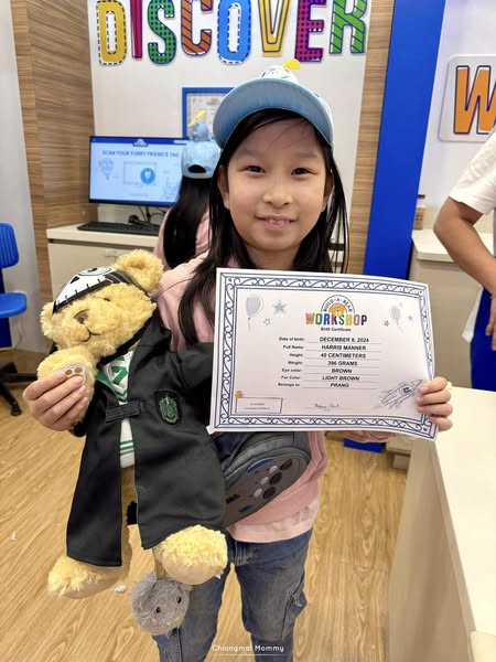 เด็กจะได้เลือกคาแรคเตอร์เอง แต่งตัวเอง แสดงออกได้อย่างอิสระ ใส่นุ่น ใส่หัวใจให้ตุ๊กตาหมีทำให้ตุ๊กตามีชีวิตขึ้นมา นอกจากนั้นยังสามารถเลือกใส่เสียงพูดอัดเพิ่มเข้าไปได้ด้วยค่ะ พอจับมือก็ได้ยินเสียงเด็กๆ น่ารักมากกกกกก ยังไม่พอเด็กๆสามารถตั้งชื่อคีย์ข้อมูลวันเกิดของตุ๊กตาหมี สุดท้ายก็จะได้สูติบัตรของน้องหมีกลับบ้านด้วย ลูกดีใจมากๆเหมือนเป็นแม่ของตุ๊กตาหมีเลยค่ะ ![]()
