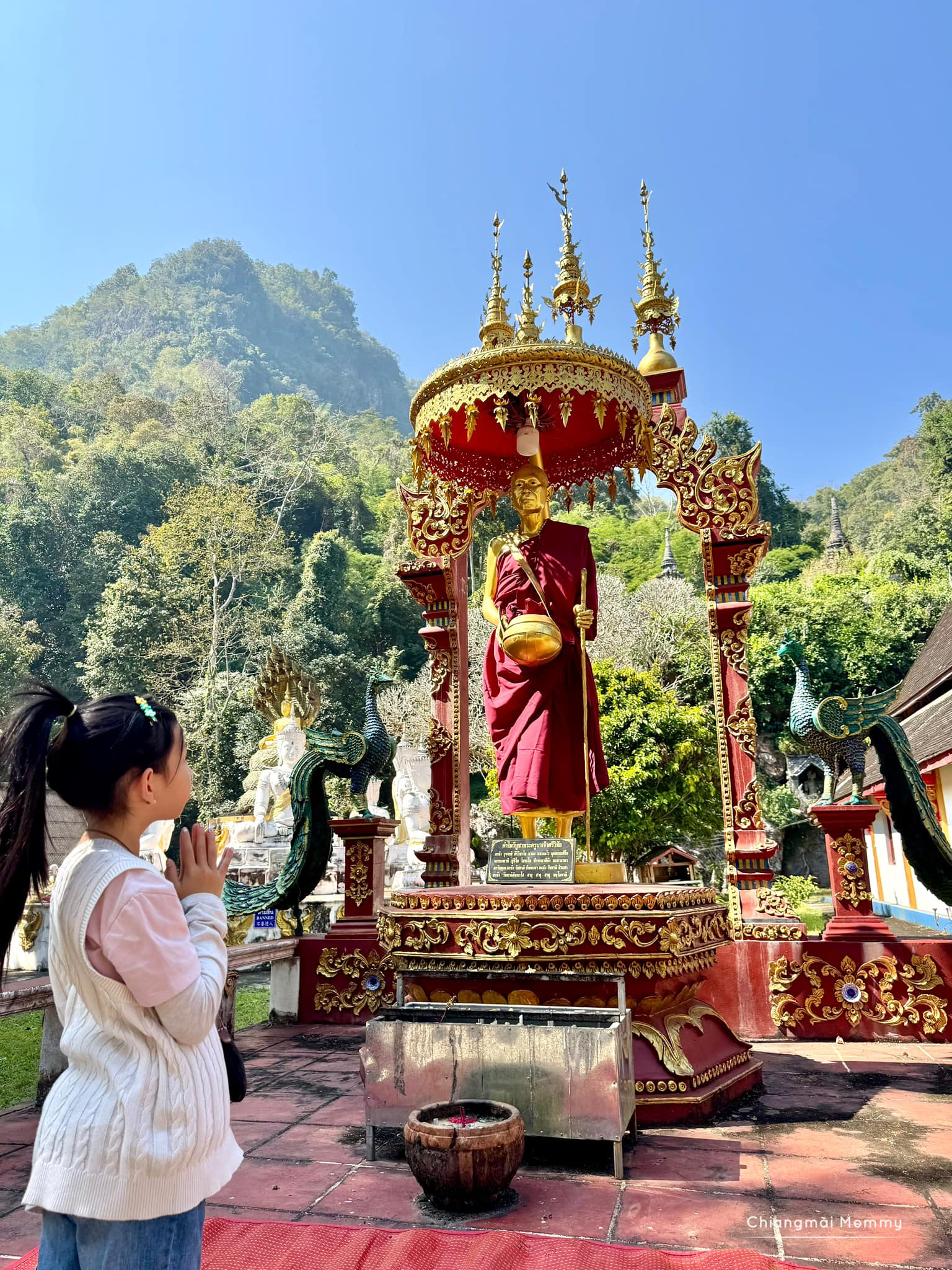ขับรถจากเชียงใหม่ แวะทำบุญที่วัดถ้ำเชียงดาว เด็กๆแขวนโคมขอพร และให้อาหารปลา ภายในมีกิจกรรมสำรวจถ้ำเด็กๆสามารถเที่ยวได้ (เราเพิ่งเที่ยวมาไม่นานมานี่ รอบนี้เลยไม่ได้เข้าในถ้ำ)