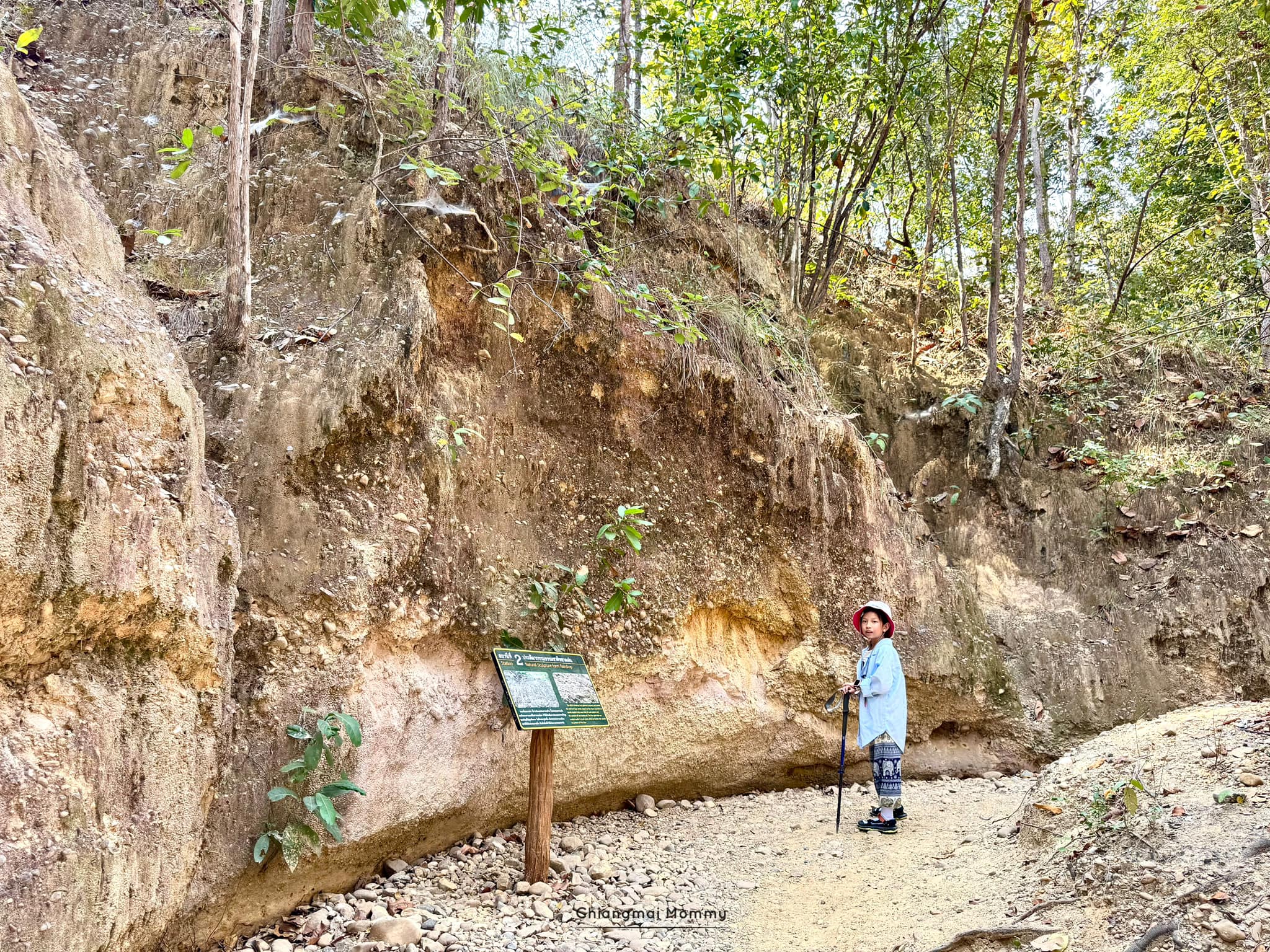 กิจกรรมเดินป่าศึกษาธรรมชาติของที่นี่ก็ว้าวค่ะ เป็นเรื่องธรณีวิทยาการเปลี่ยนแปลงของโลกตั้งแต่สมัยดึกดำบรรพ์เมื่อ 5 ล้านปีที่ผ่านมา ปริมปรางตื่นเต้นใหญ่ (แม้ว่าจะเคยมาแล้วก็เหอะ